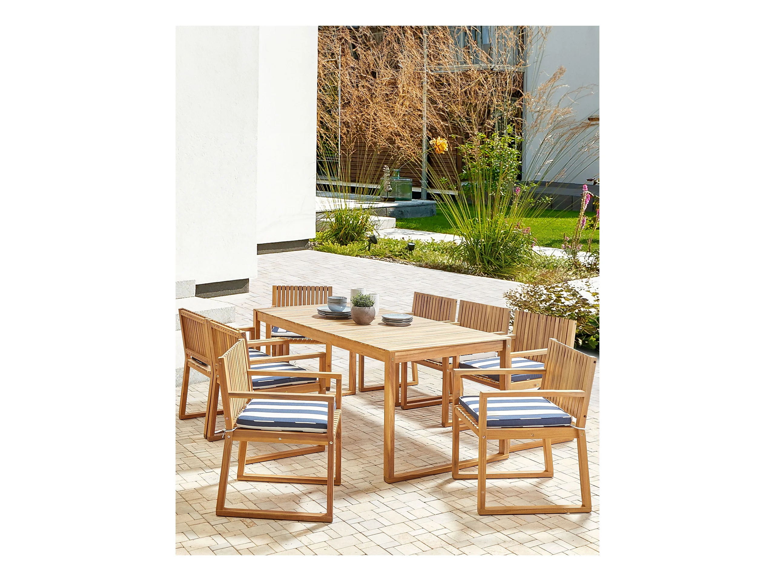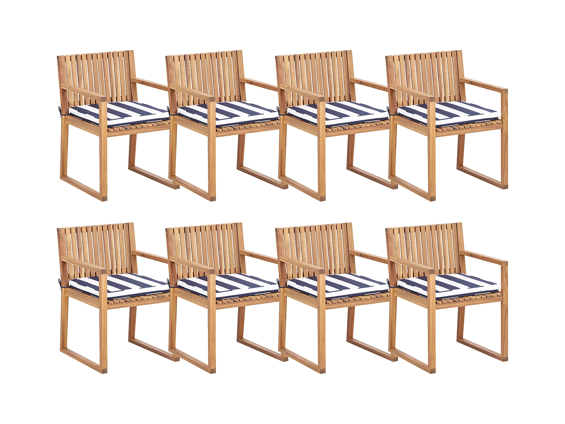Lot de 8 chaises de jardin avec coussins SASSARI II Bois d'acacia certifié Bleu marine