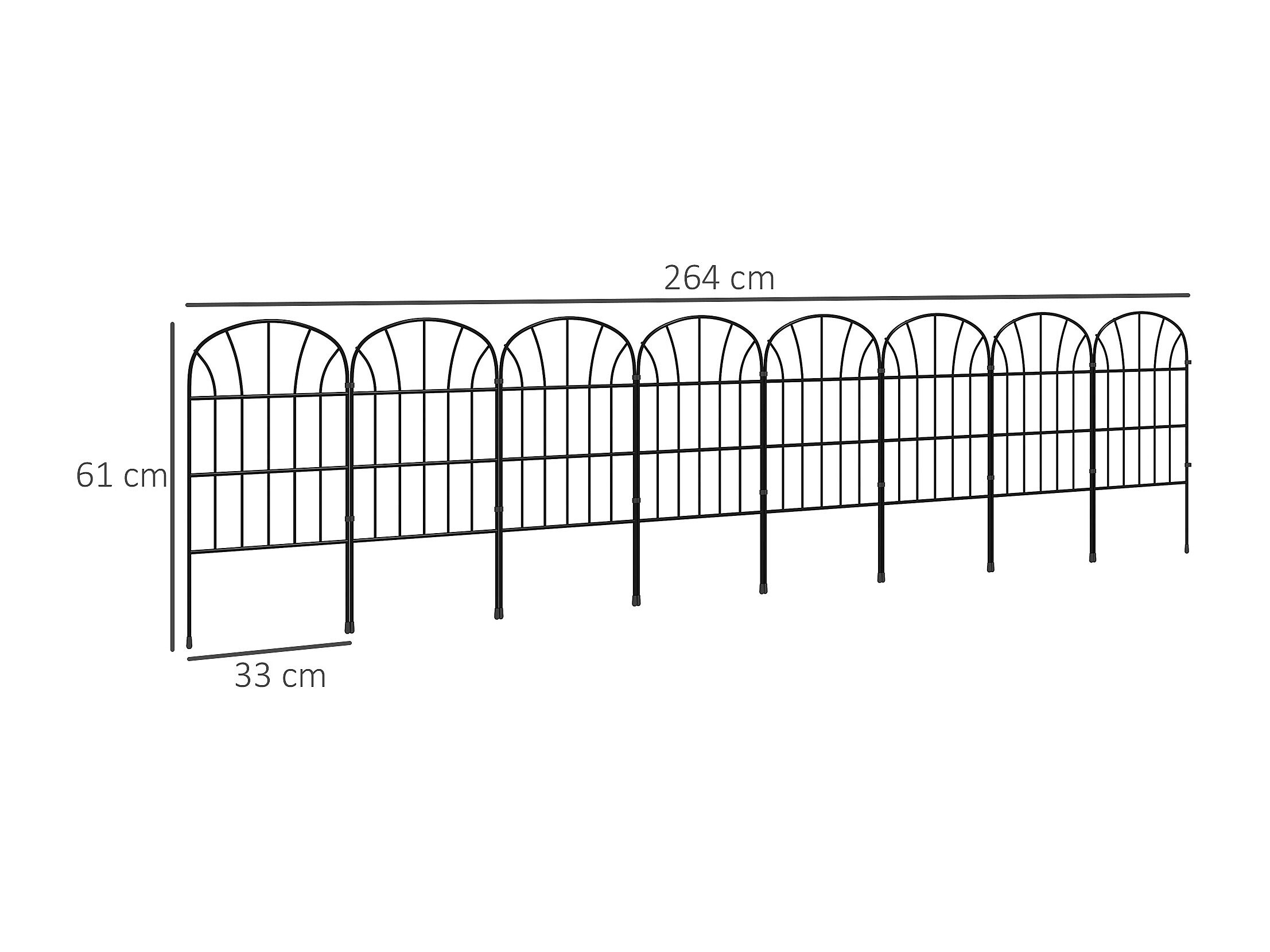 Lot de 8 clôtures de jardin décoratives avec ornements métal noir