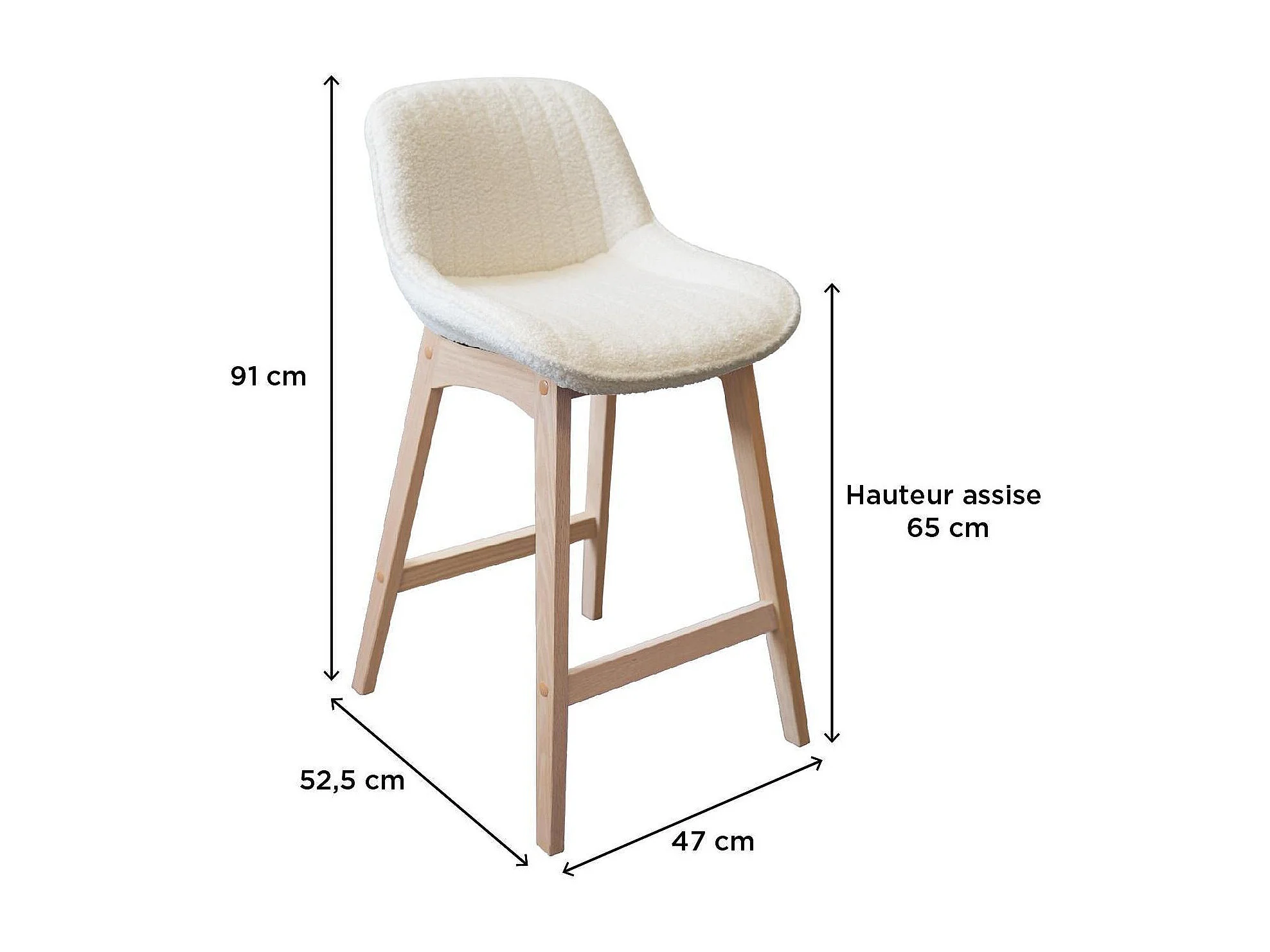 Lot de chaises d'îlot et bar en chêne et assise tissu bouclette 65cm MILK