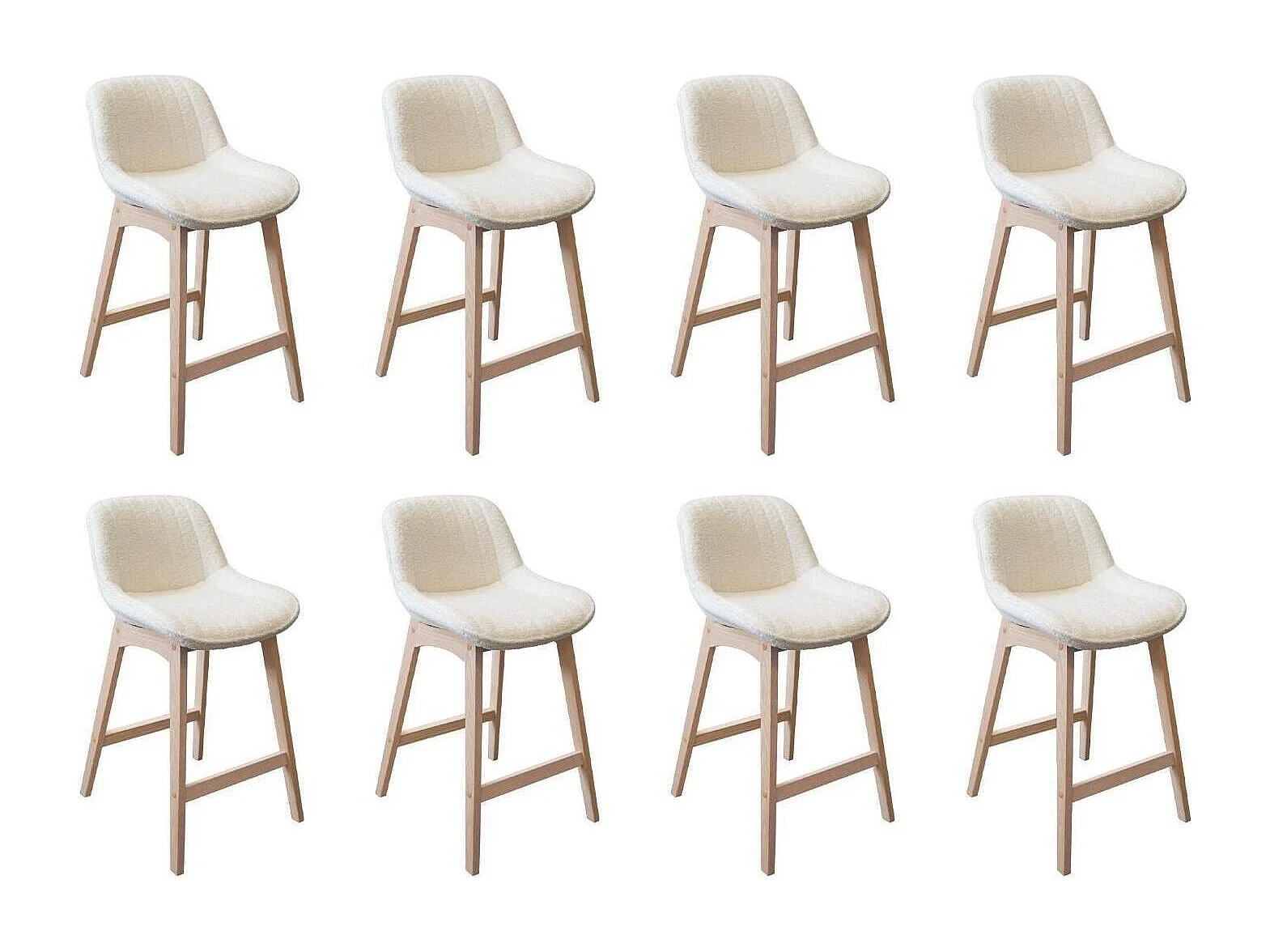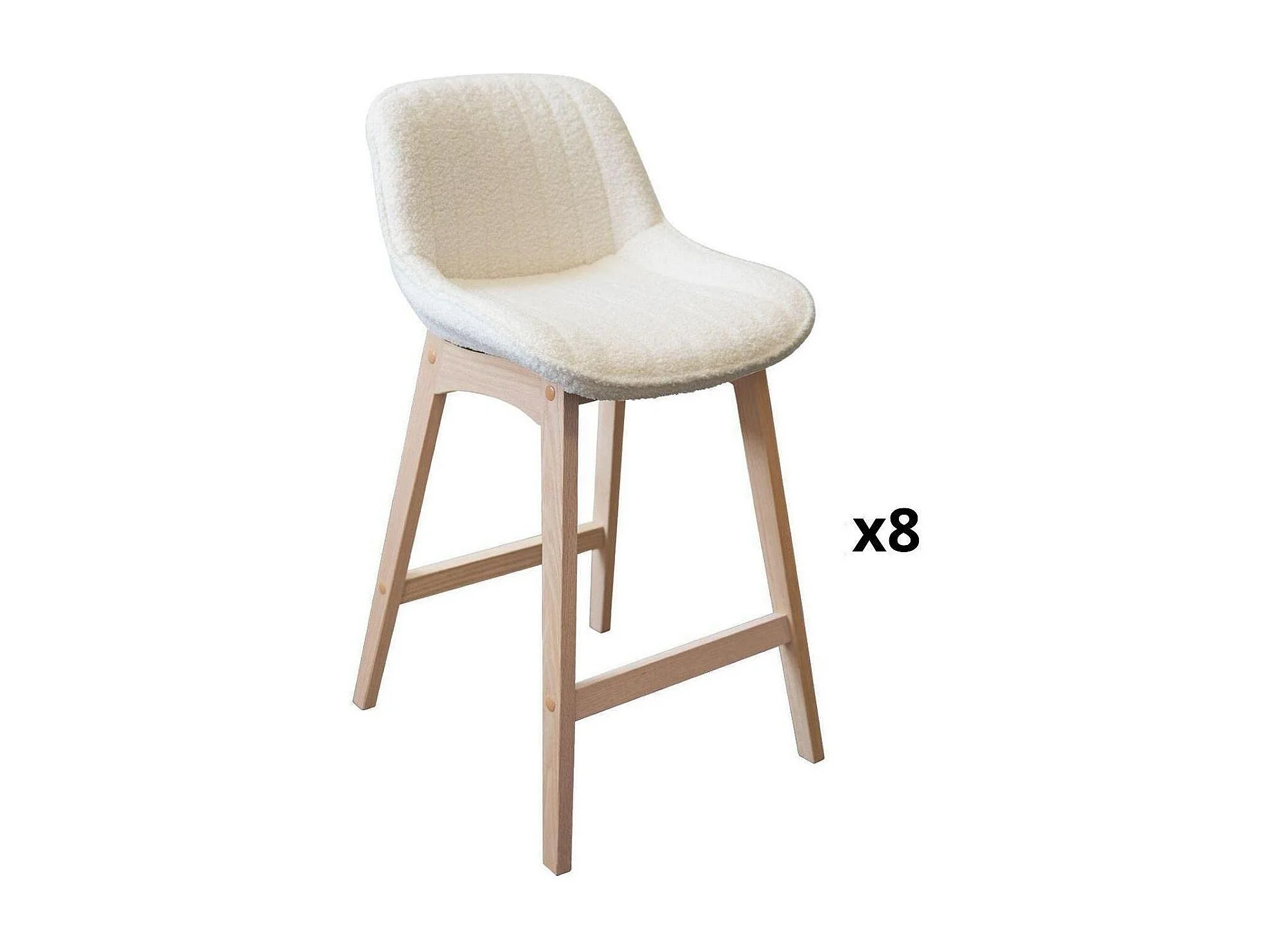 Lot de chaises d'îlot et bar en chêne et assise tissu bouclette 65cm MILK