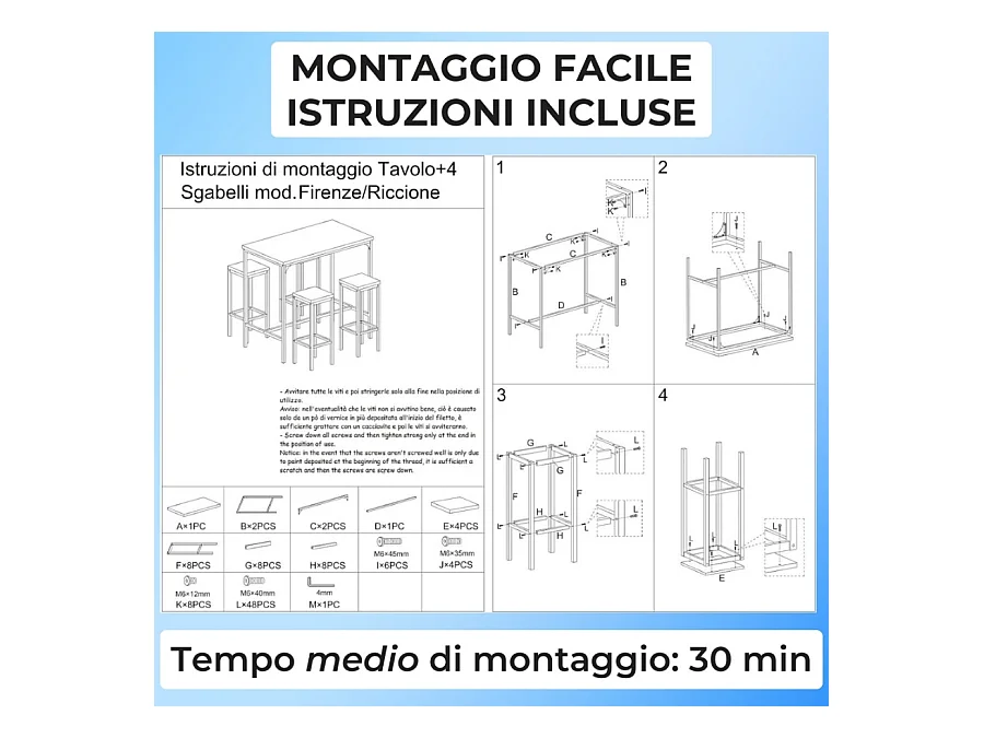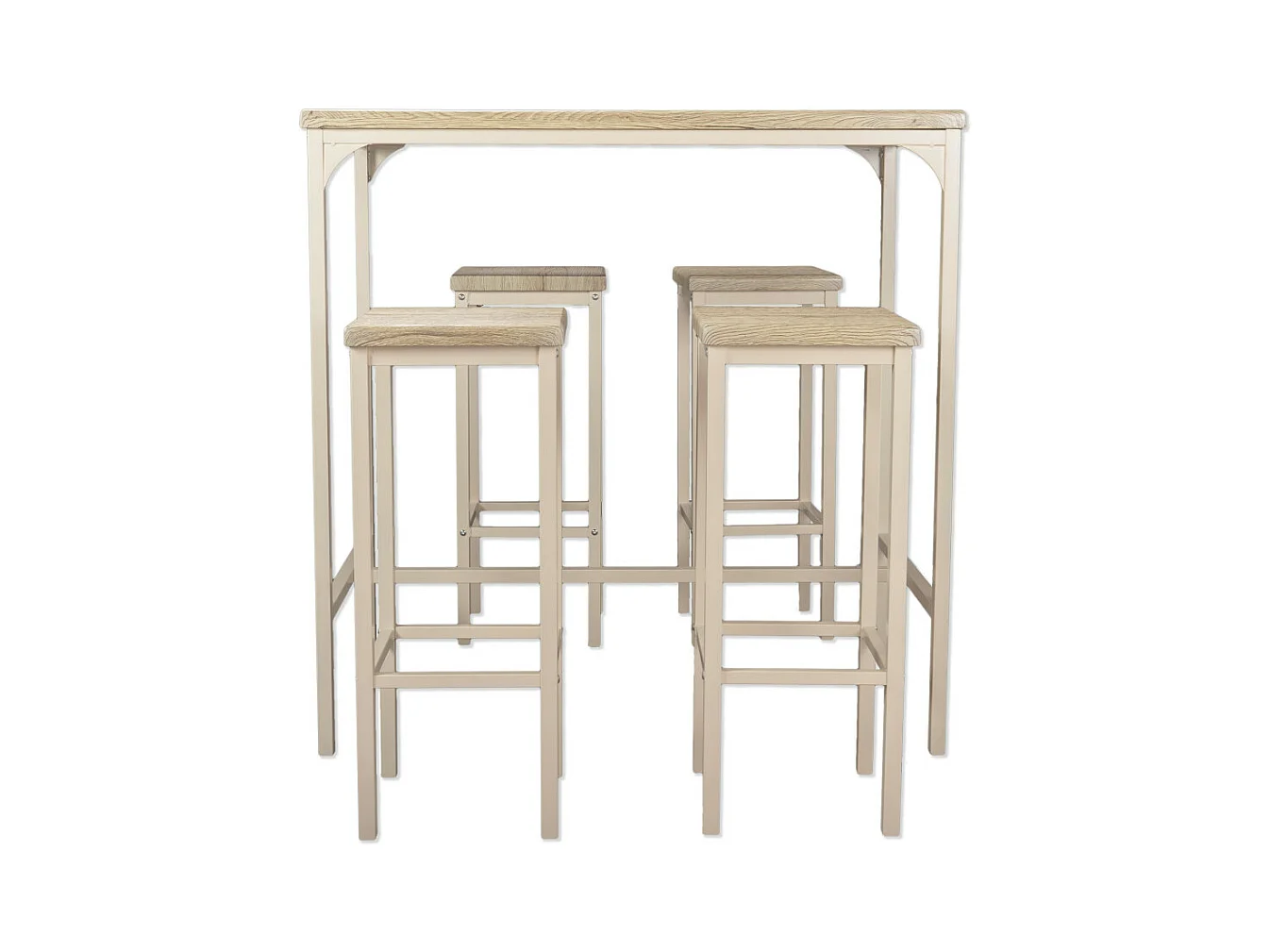 Lot de table de bar rectangulaire 110x66xH110cm et 4 tabourets en chêne beige mod. RICCIONE par Yelloo