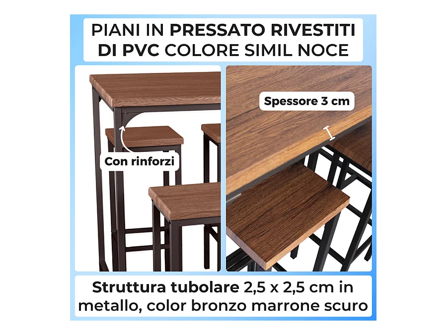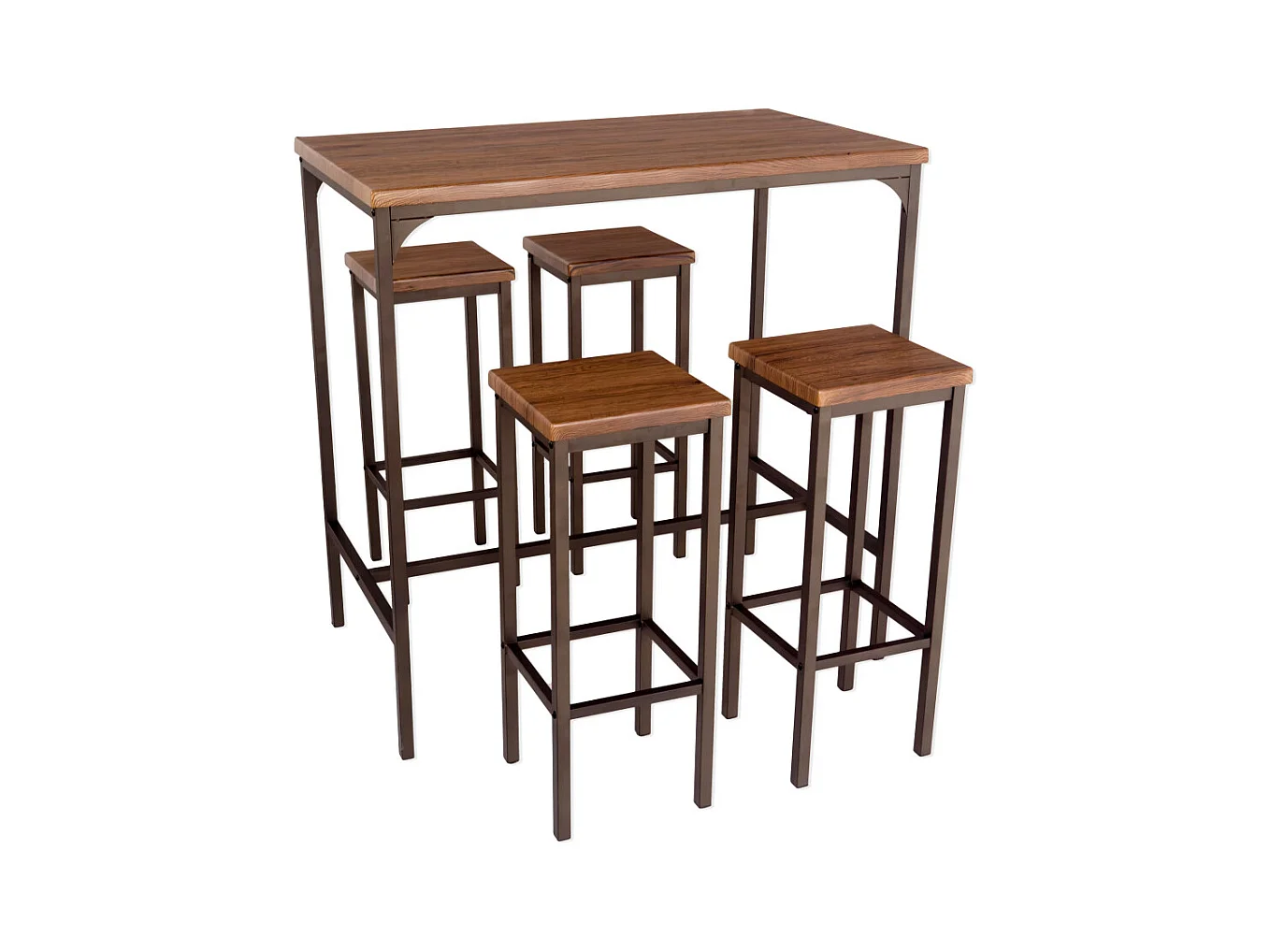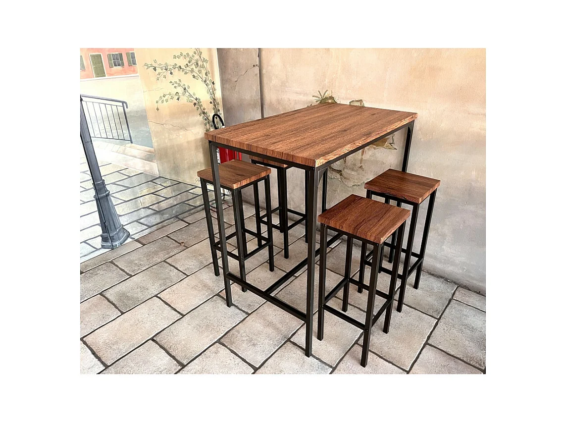 Lot table de bar 110x66xH110cm et 4 tabourets noyer marron mod. FIRENZE par Yelloo