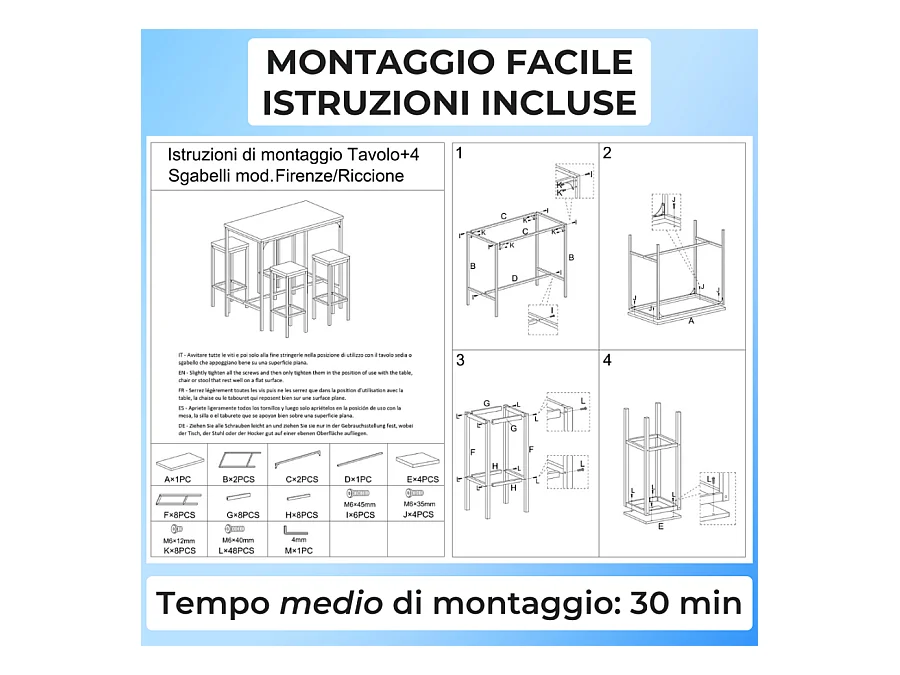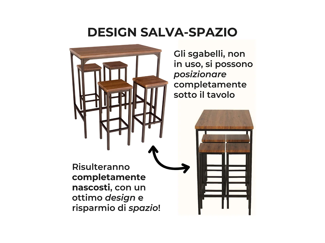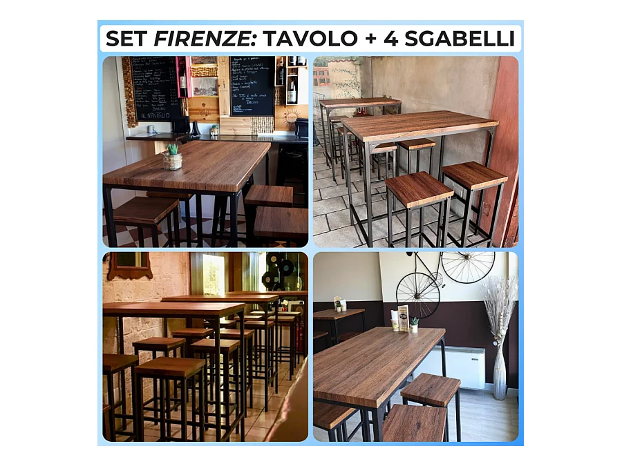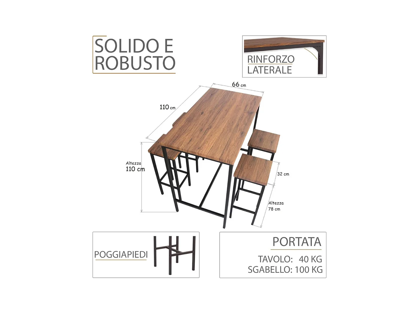 Lot table de bar 110x66xH110cm et 4 tabourets noyer marron mod. FIRENZE par Yelloo