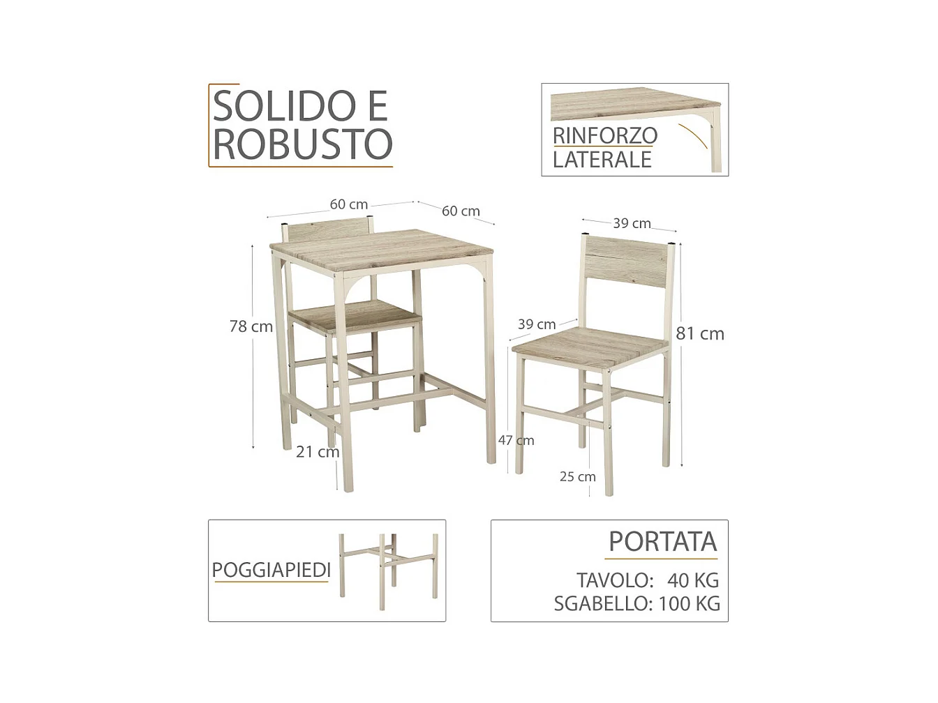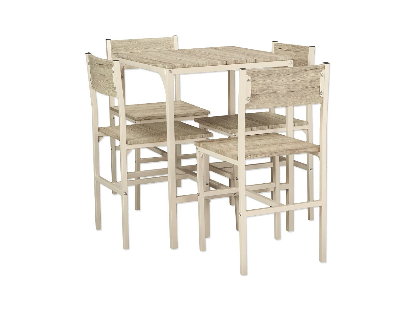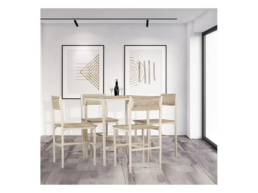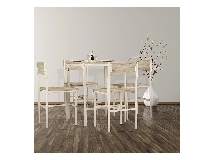 Lot Table De Bar Avec 4 Chaises Beige et Chêne Clair Mod. PORTOFINO par Yelloo