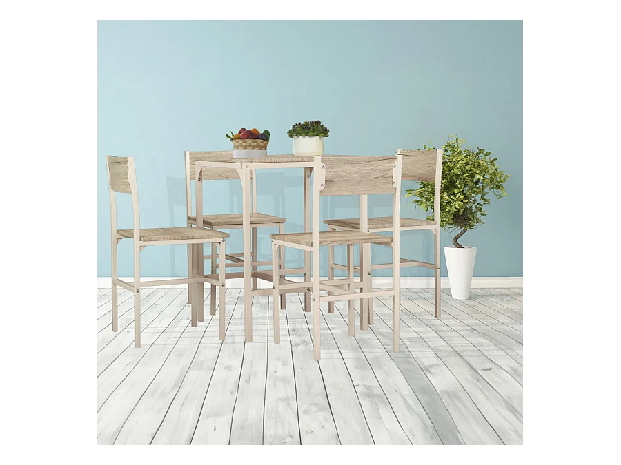 Table de bar et 4 tabourets de bar scandinaves en bois - LETA