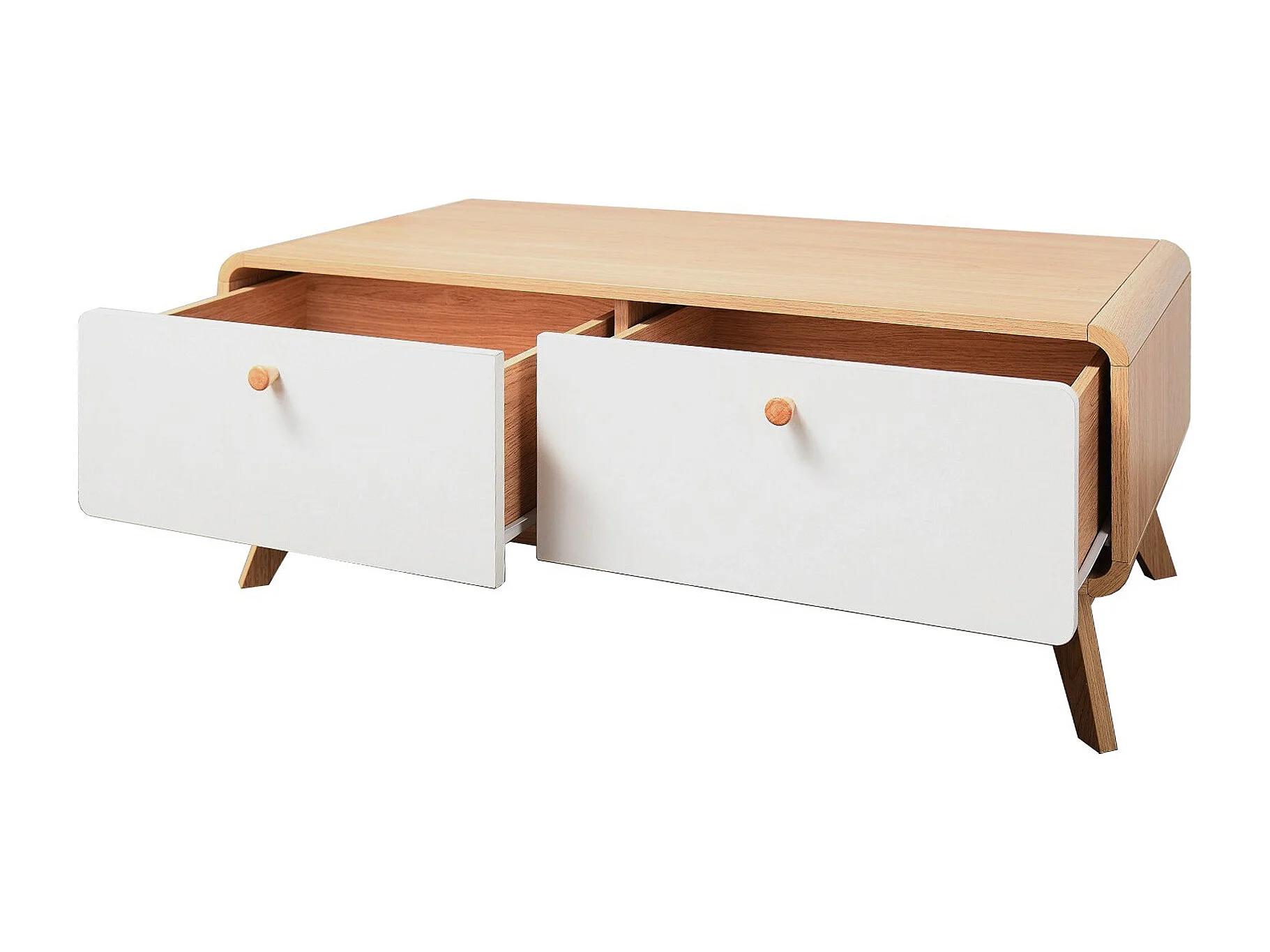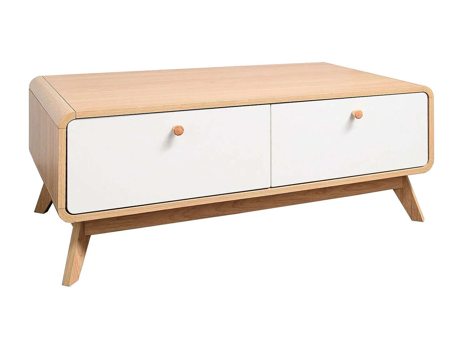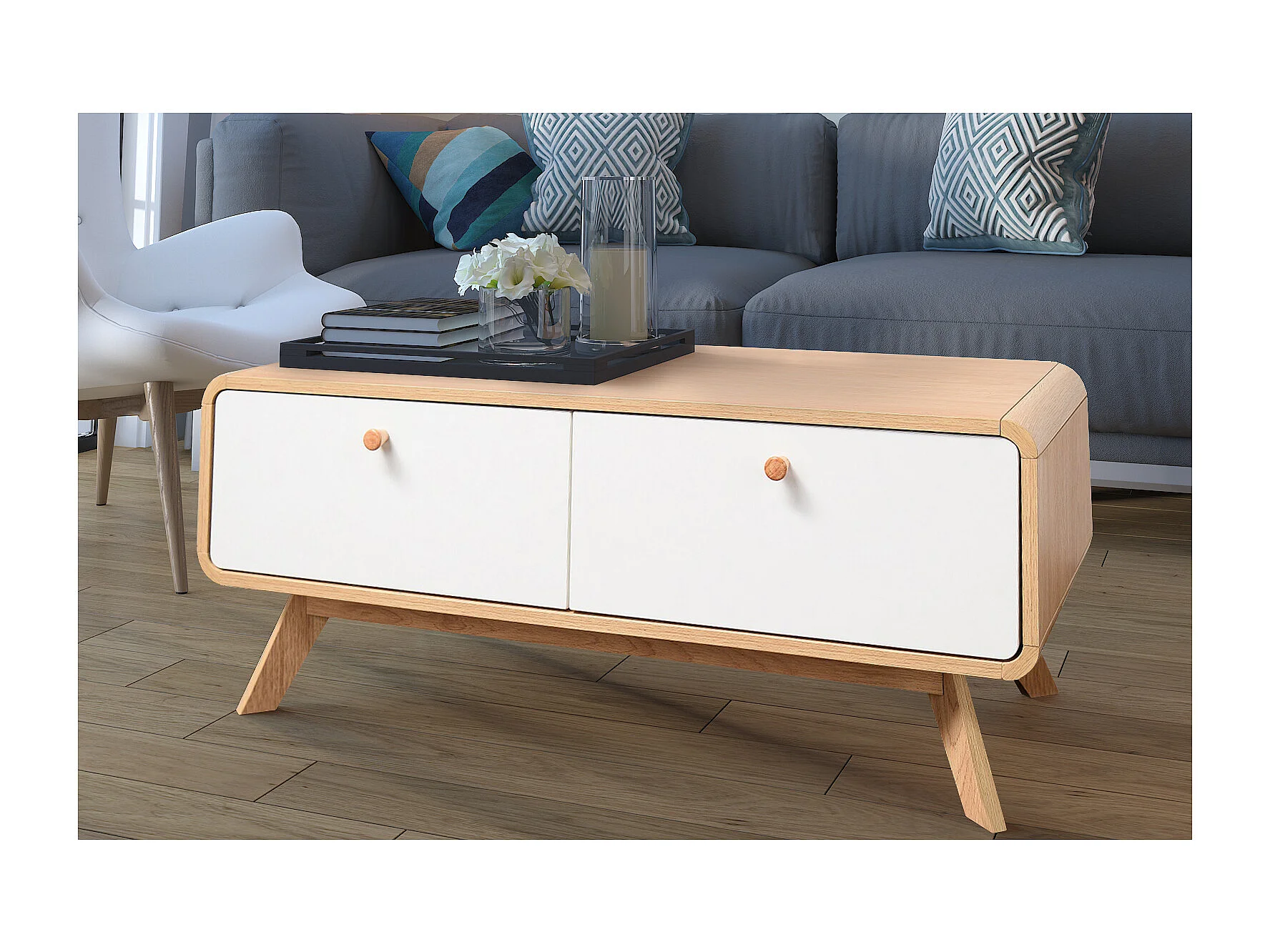 Cassie | Lowboard avec 2 tiroirs en panneau de particules chêne et blanc