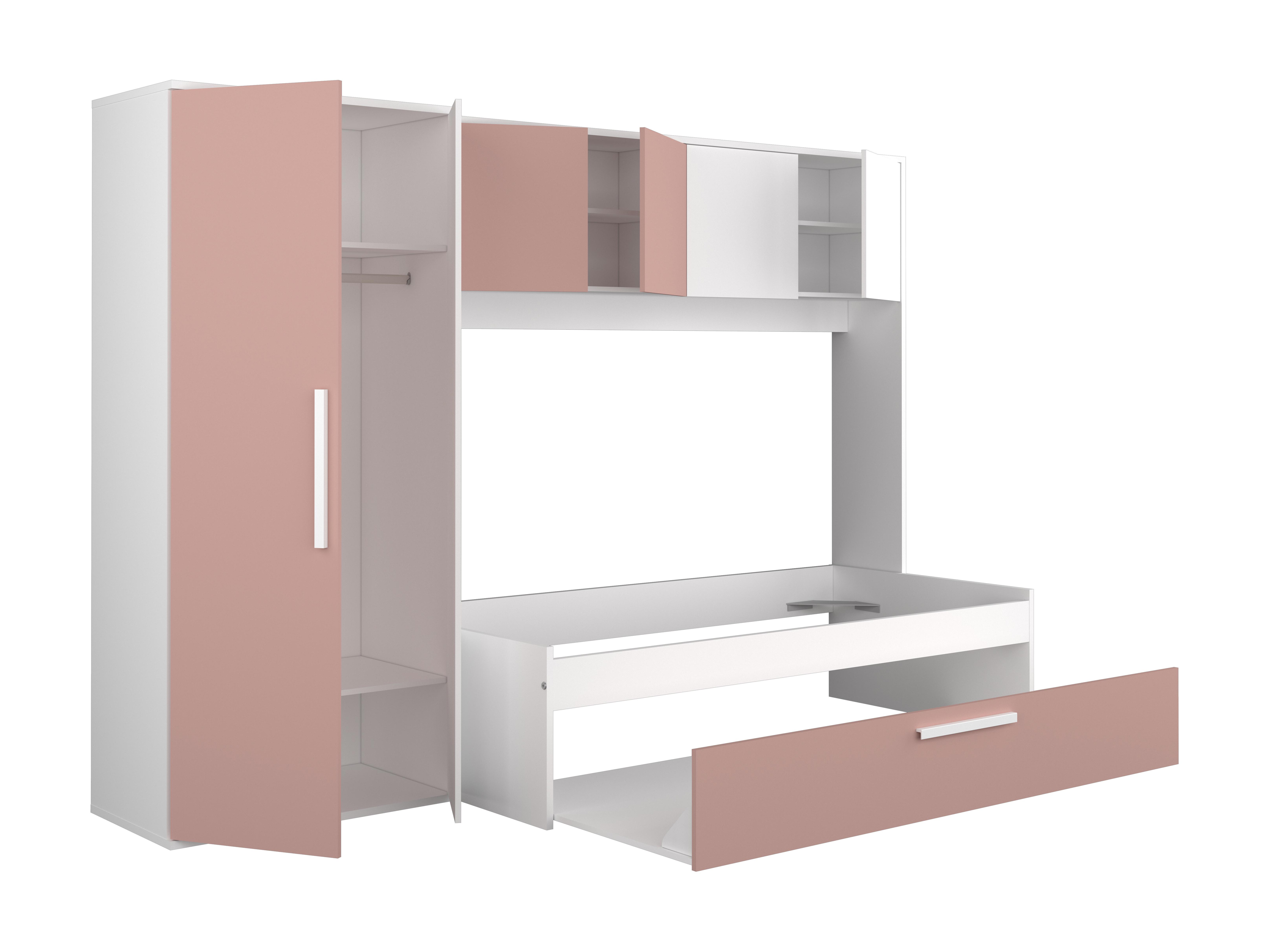 Lit avec tiroir gigogne 2 x 90 x 200 cm - Avec armoire – Rose et blanc - LUMOKA