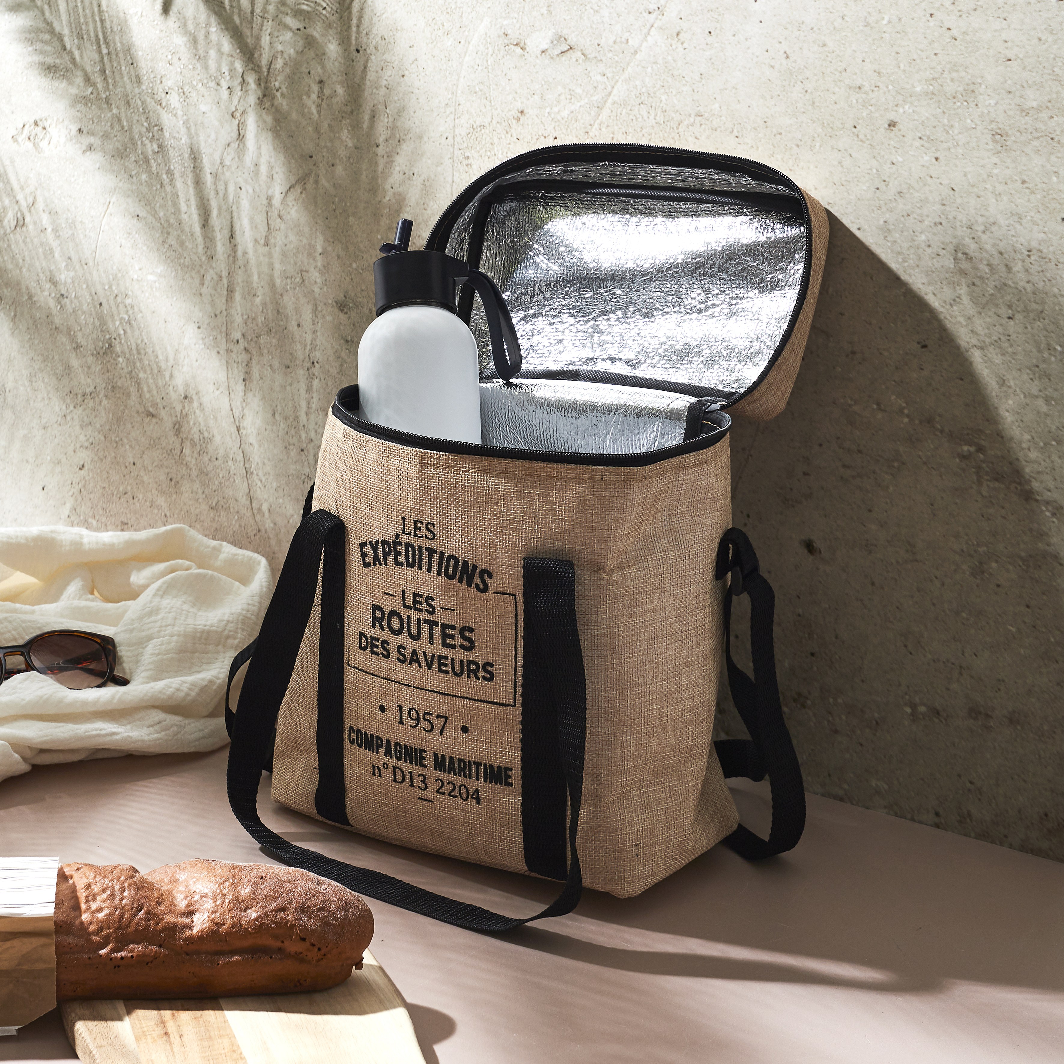 Lunch Bag Fraicheur Effet Jute 35x18x26 Beige, Noir