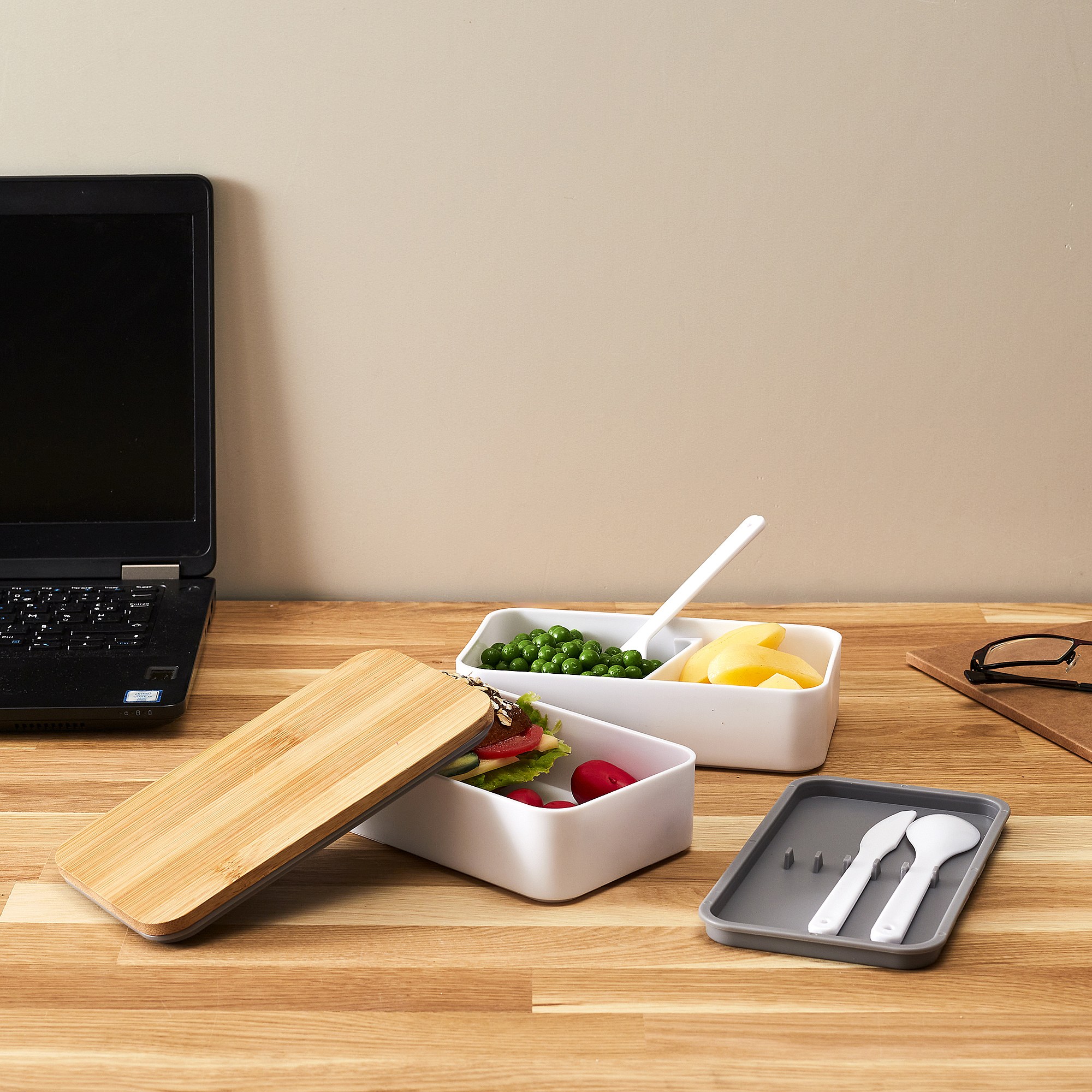 Lunch Box 2 Niveaux Avec Bande Elastique Marron, Blanc, Gris