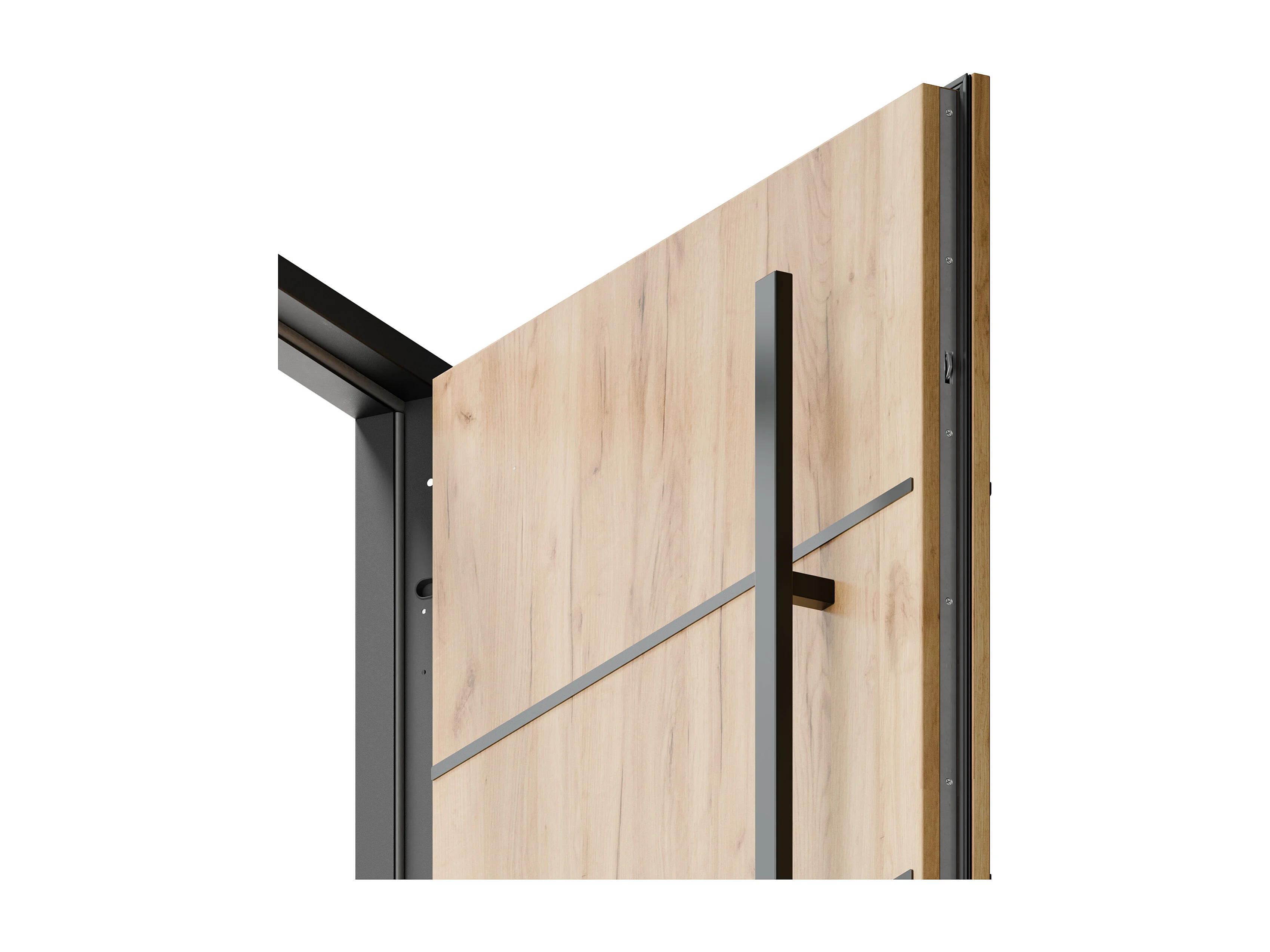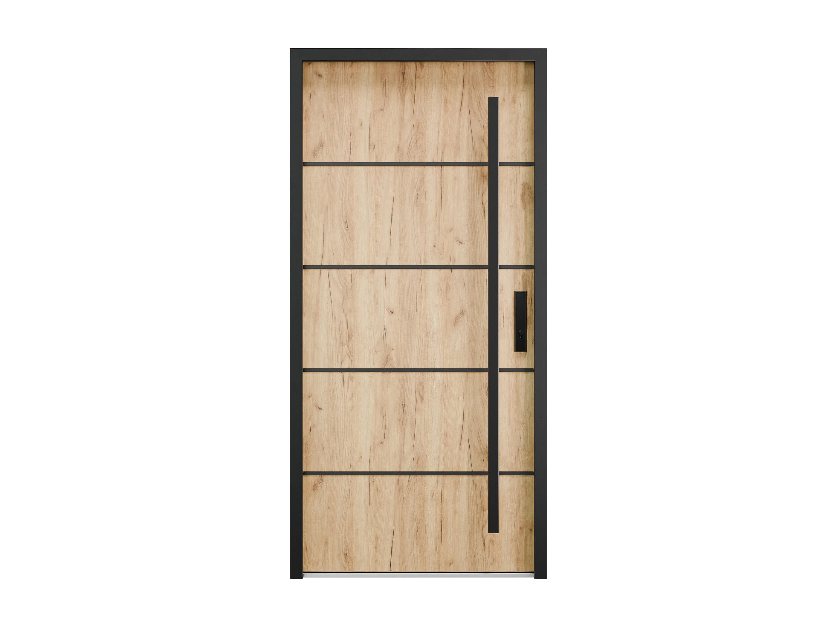 Porte d'entrée en acier pleine et inox H207 x L100 cm effet chêne - poussant gauche - LUSADA