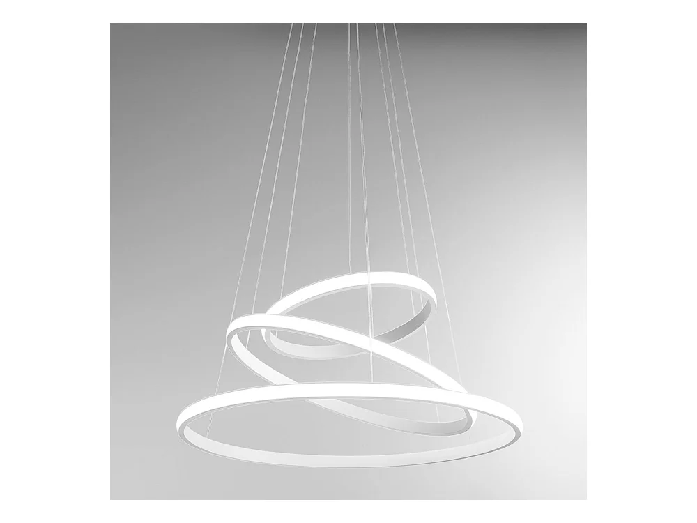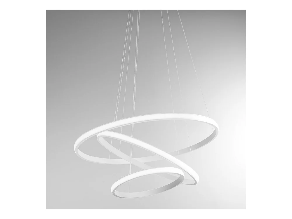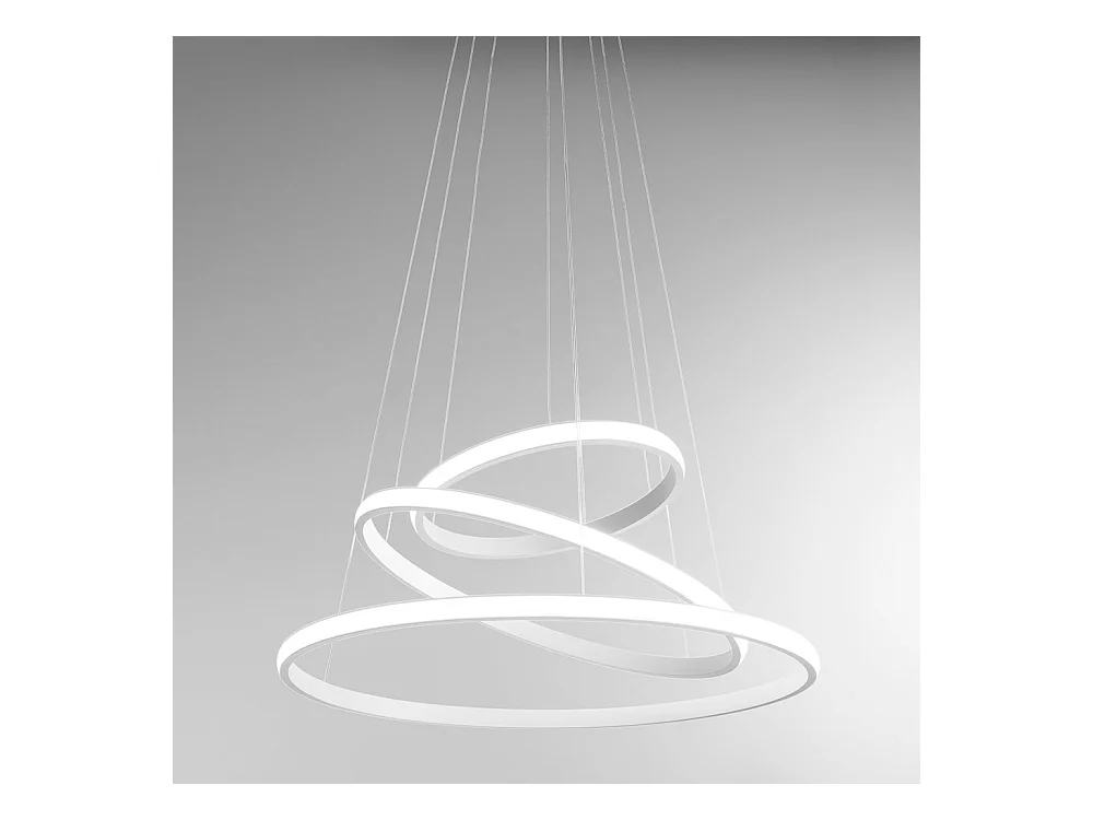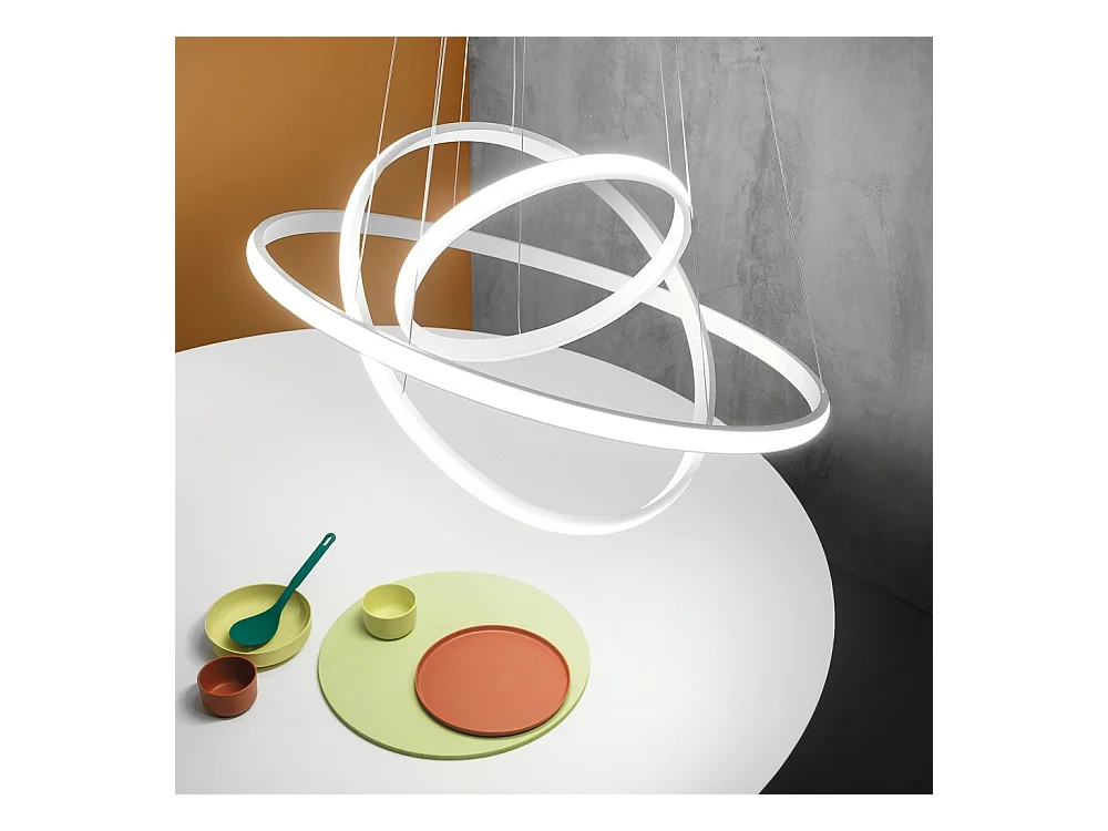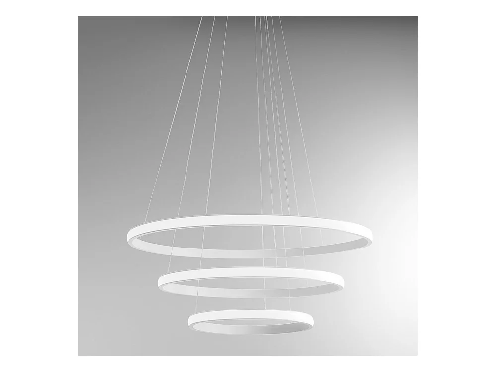Lustre LED dimmable Iole S3 60W - Suspension moderne à 3 anneaux en aluminium blanc, lumière chaude 3000K, 3000lm, design élégant