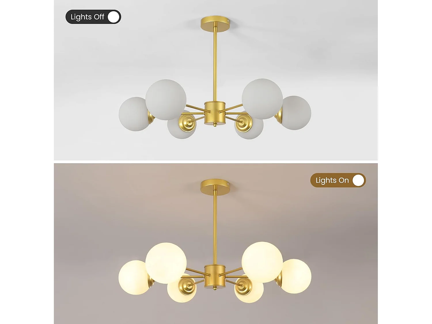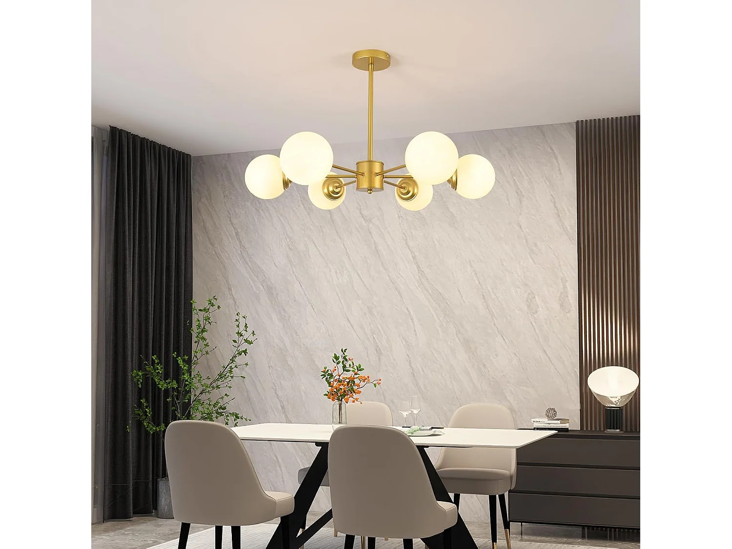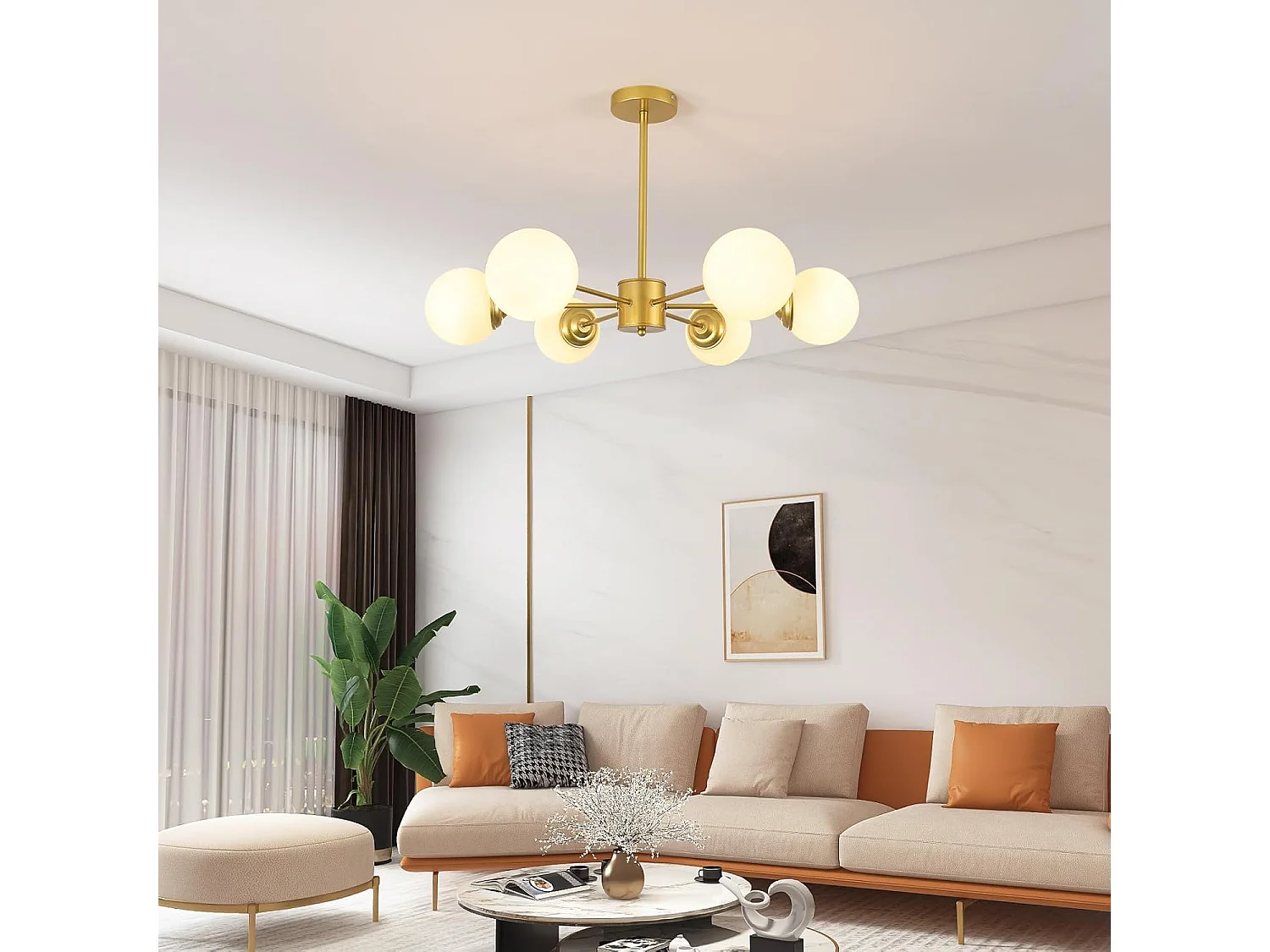 Lustre moderne, 6 lampes en métal, avec abat-jour en verre, plafonnier moderne doré, convient pour chambre à coucher, salon, E27, sans ampoule