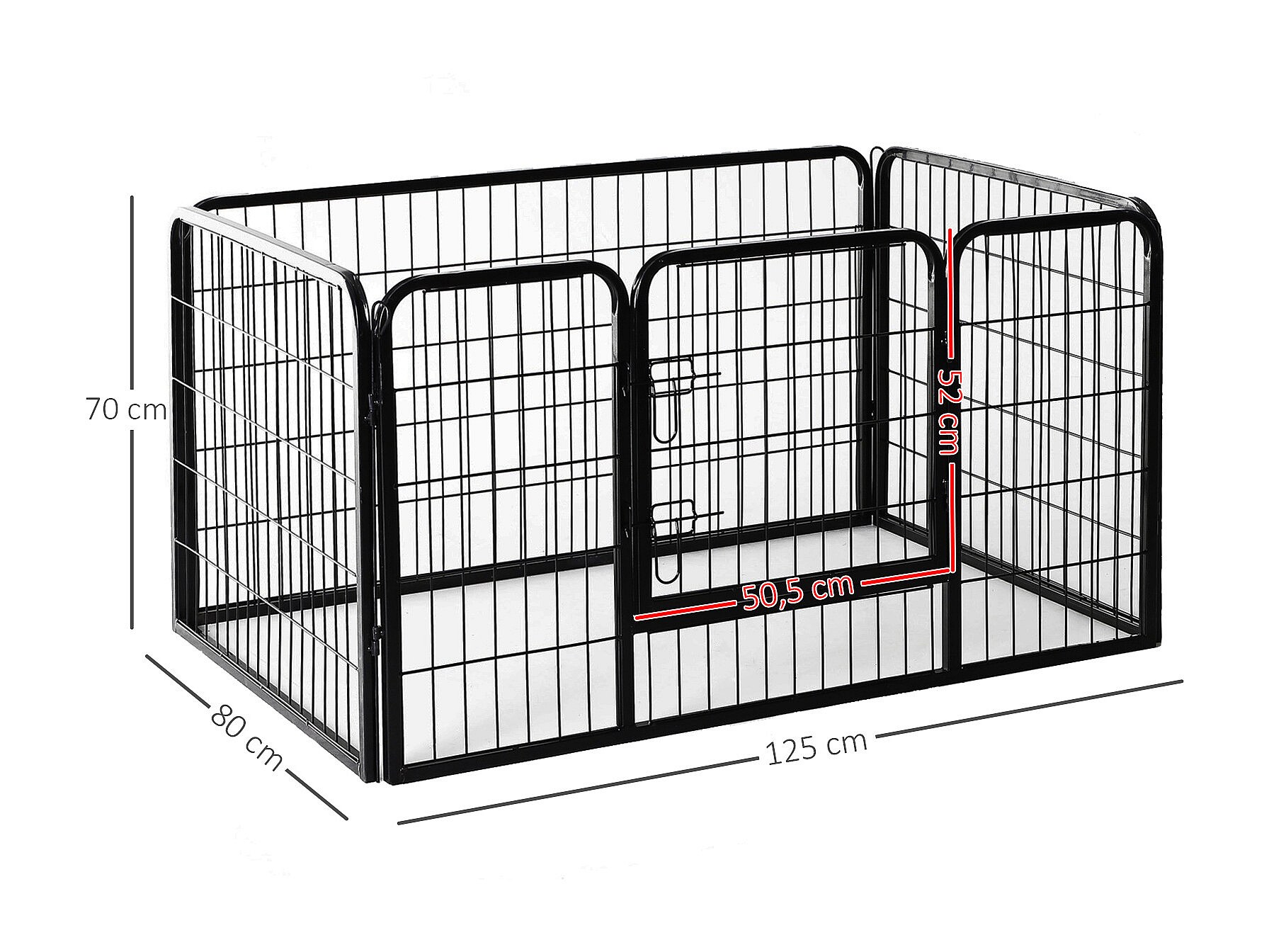 Luxe parc enclos acier 125L x 80l x 70H cm 4 panneaux et 1 porte pour chiens noir