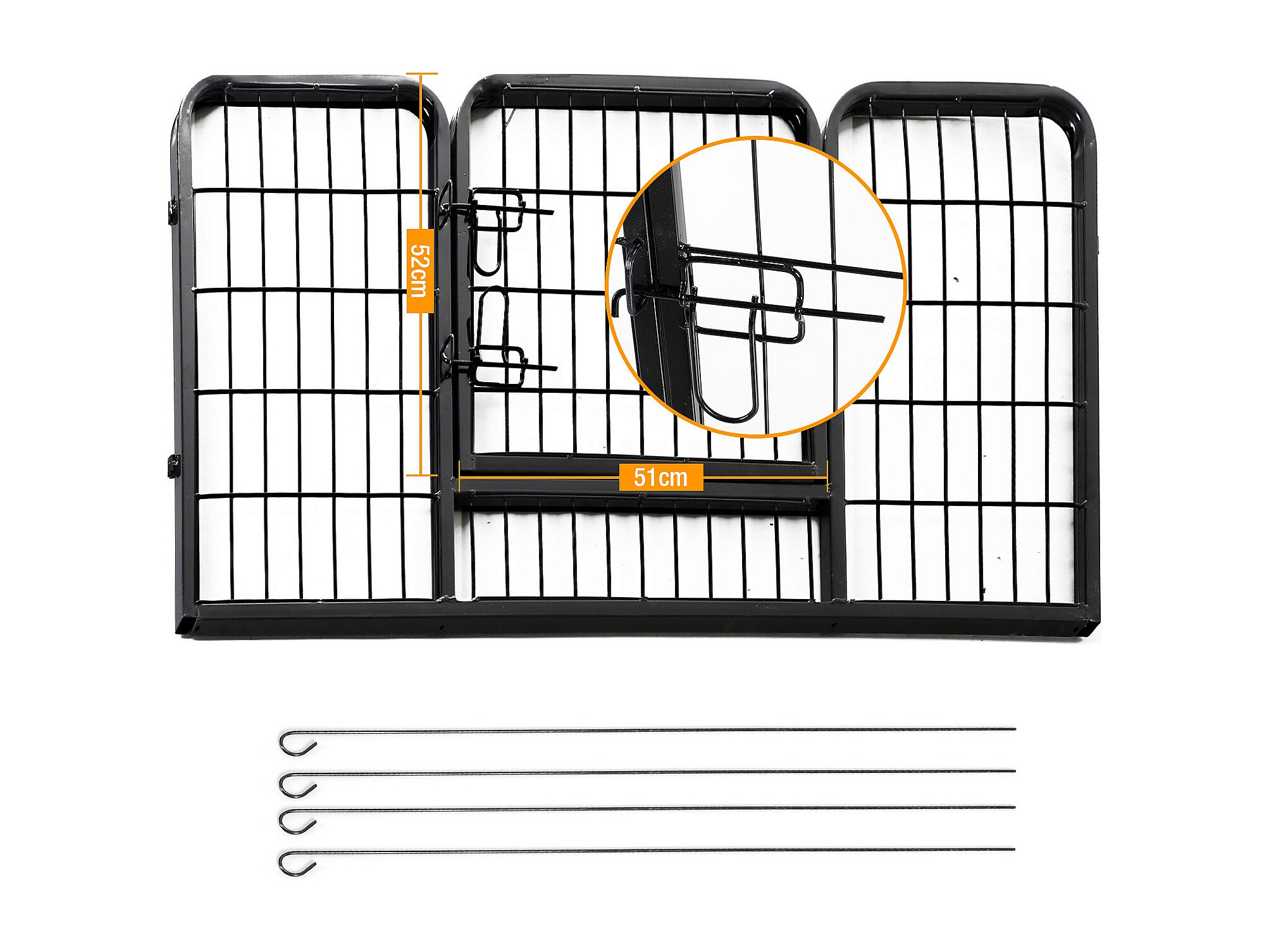 Luxe parc enclos modulable acier 8 panneaux dim. 80L x 60H cm - porte verrouillable - acier époxy noir