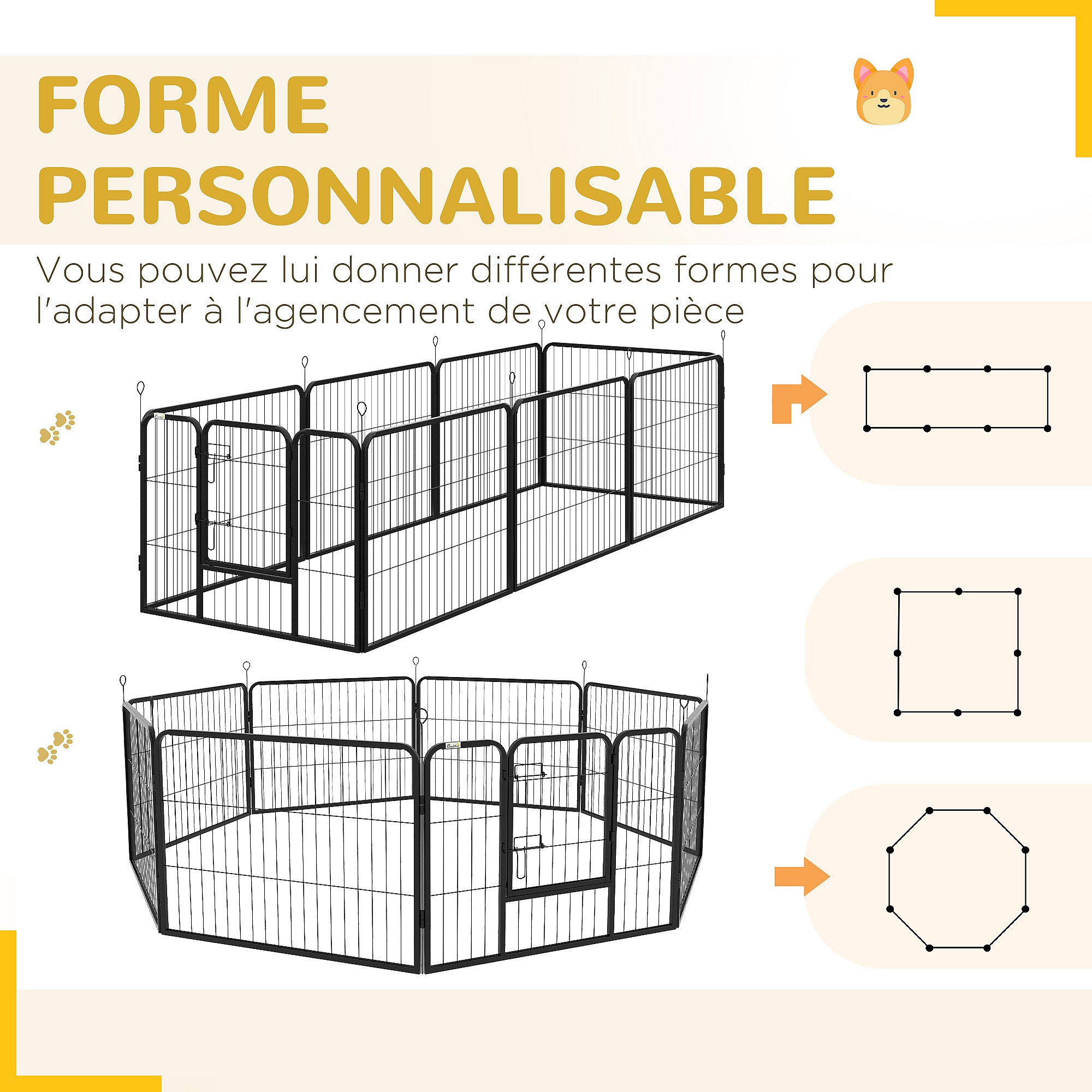 PawHut Parc enclos modulable pour animaux avec 2 portes - 12 panneaux modulables - acier noir