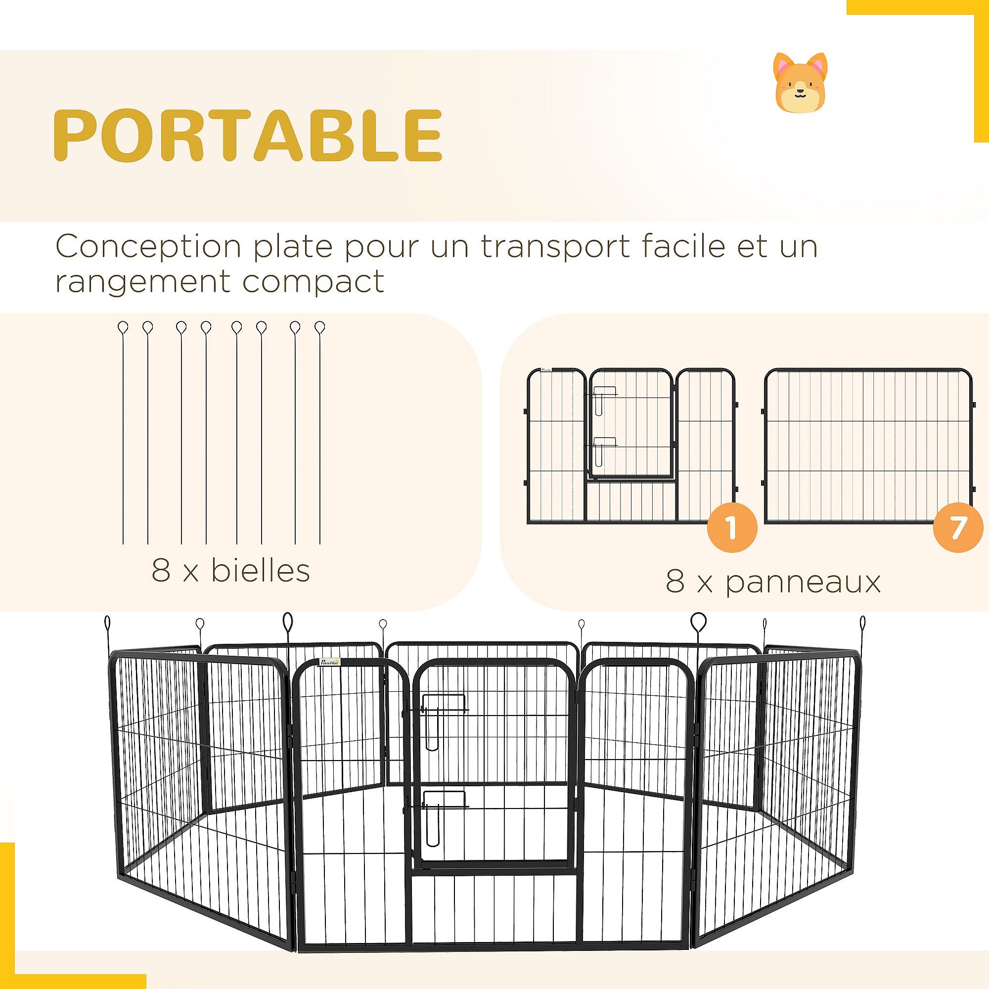 Luxe parc enclos modulable acier 8 panneaux dim. 80L x 60H cm - porte verrouillable - acier époxy noir