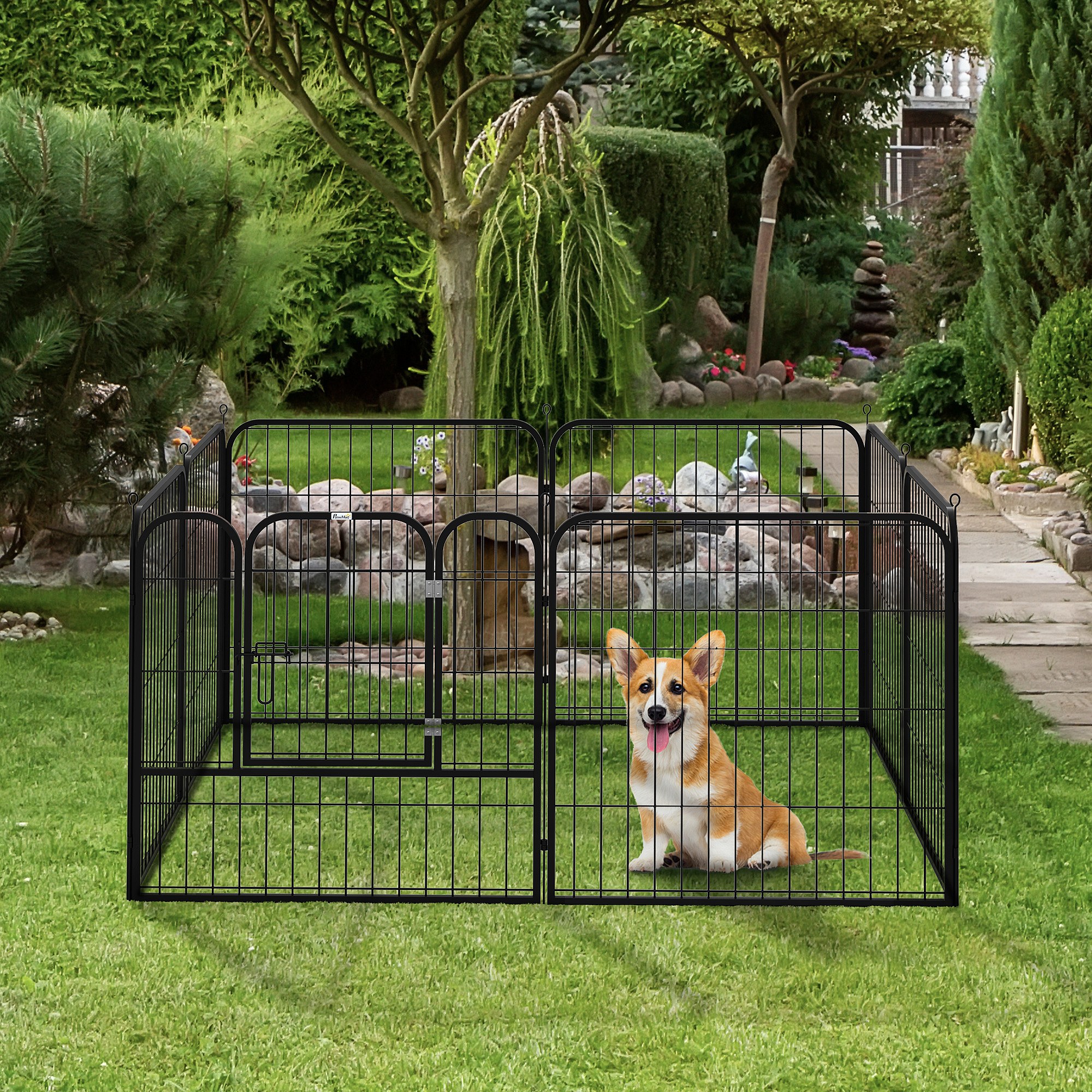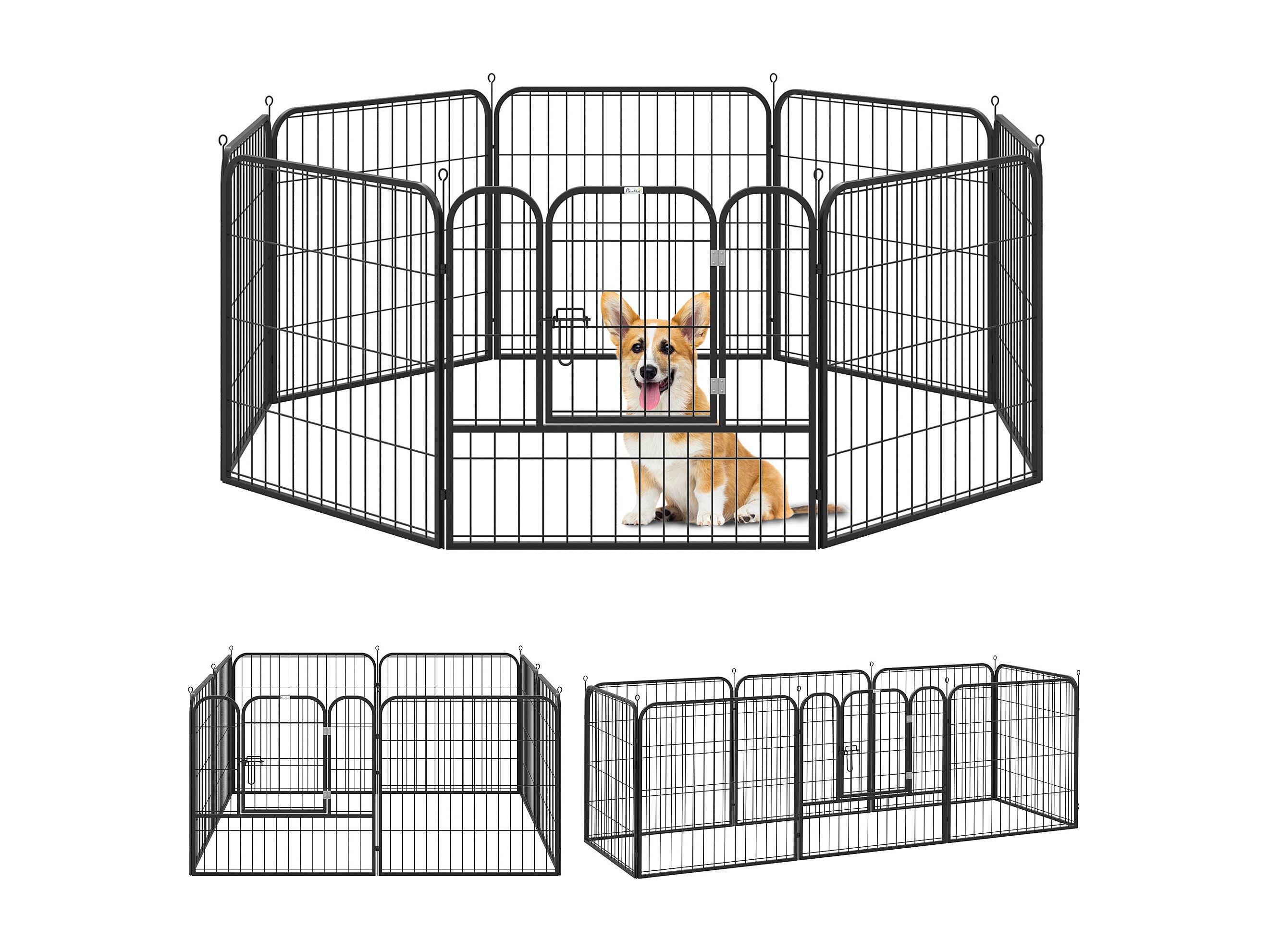 Luxe parc enclos modulable pour chien 8 panneaux porte verrouillable acier époxy noir
