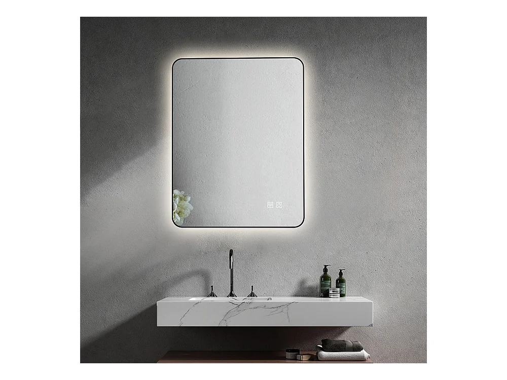 Miroir salle de bain LED 90x60cm anti buée avec cadre en aluminium noir et loupe x3 LB-4685B