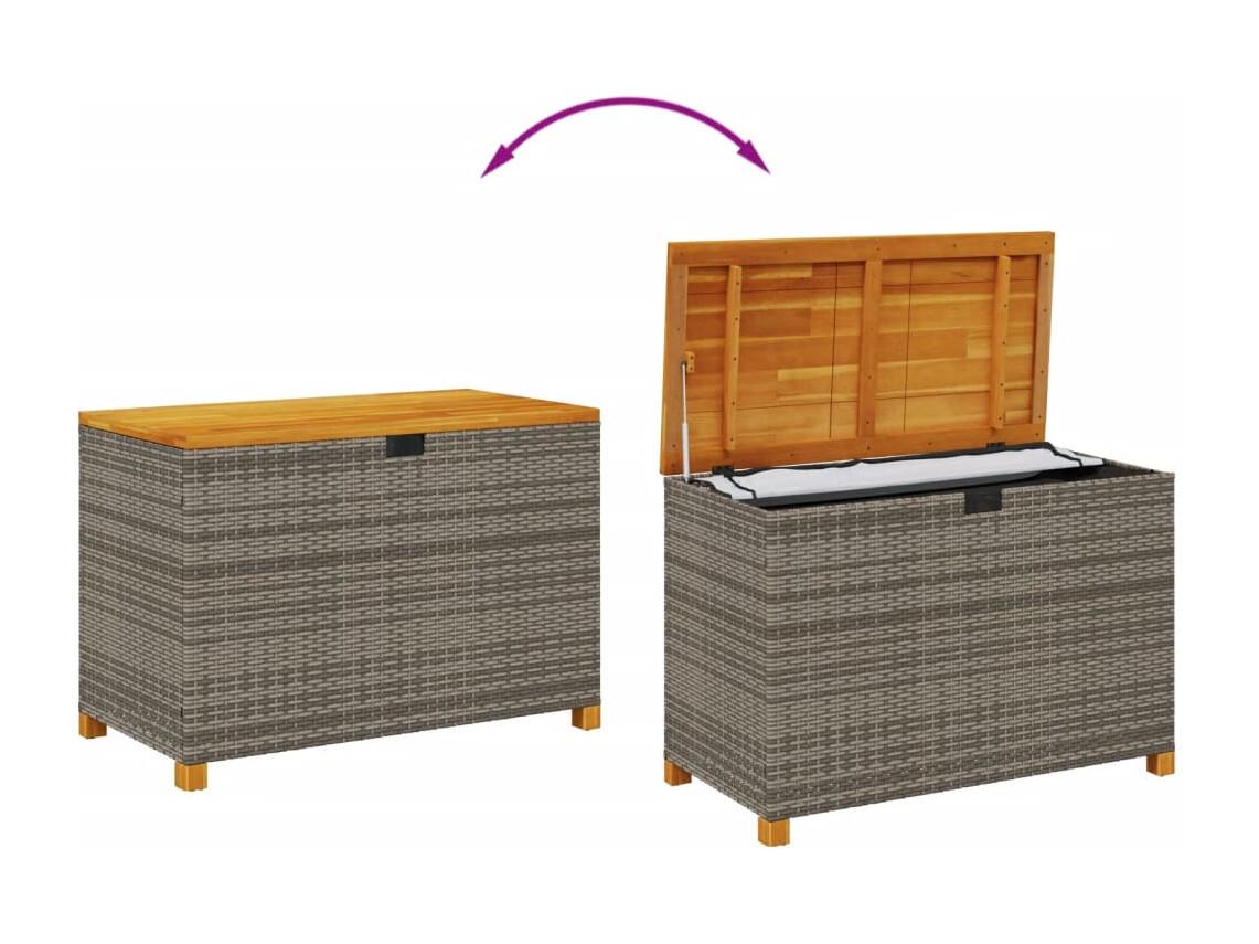 Lysja Boîte de rangement de jardin gris résine tressée bois d'acacia