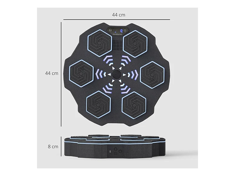 Machine de boxe musicale électronique, Bluetooth, 9 vitesses et 3 modes, plastique, noir (44x44x8 cm)