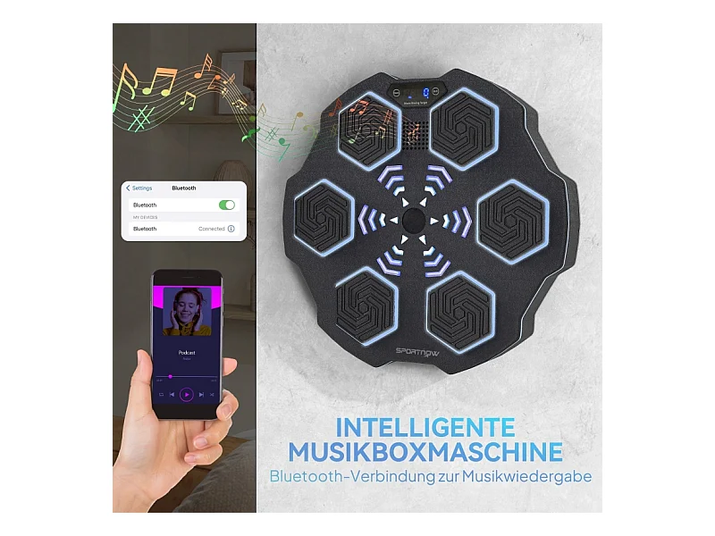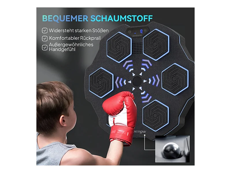 Machine à Boxe avec musique, Bluetooth, LED, montage mural, pour adultes, noir (41.8x44.6x7.5 cm)