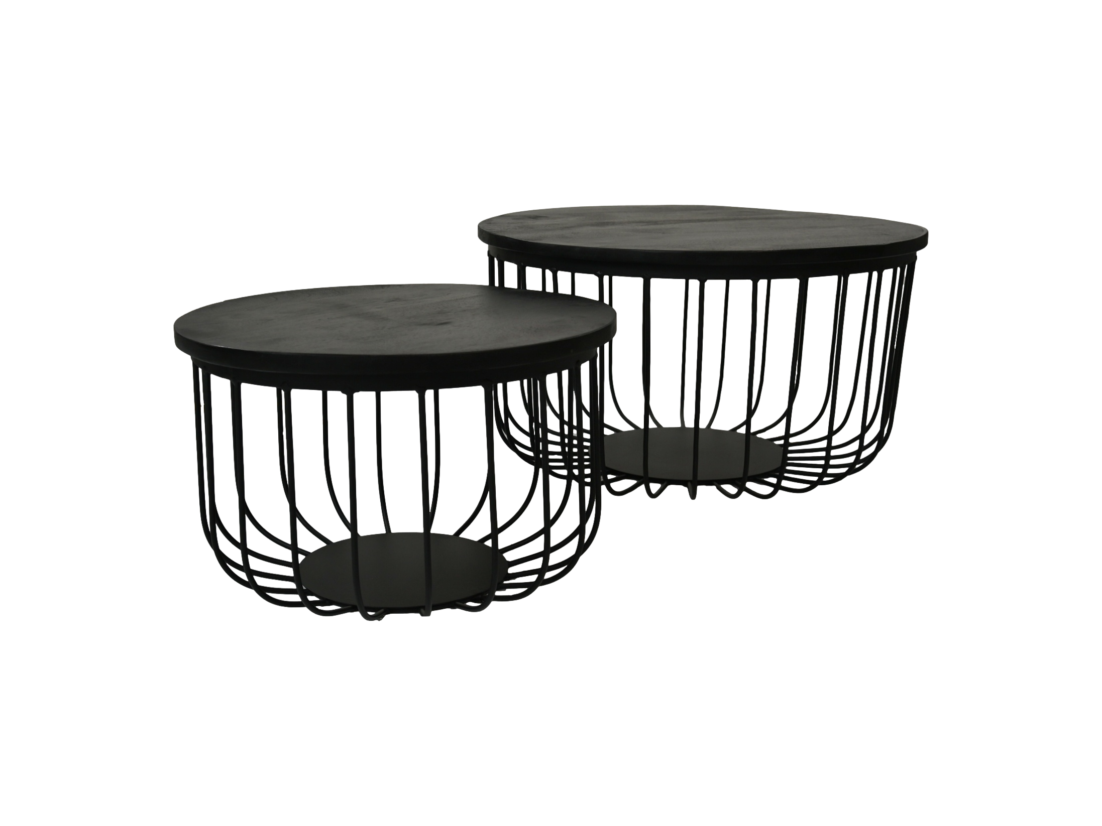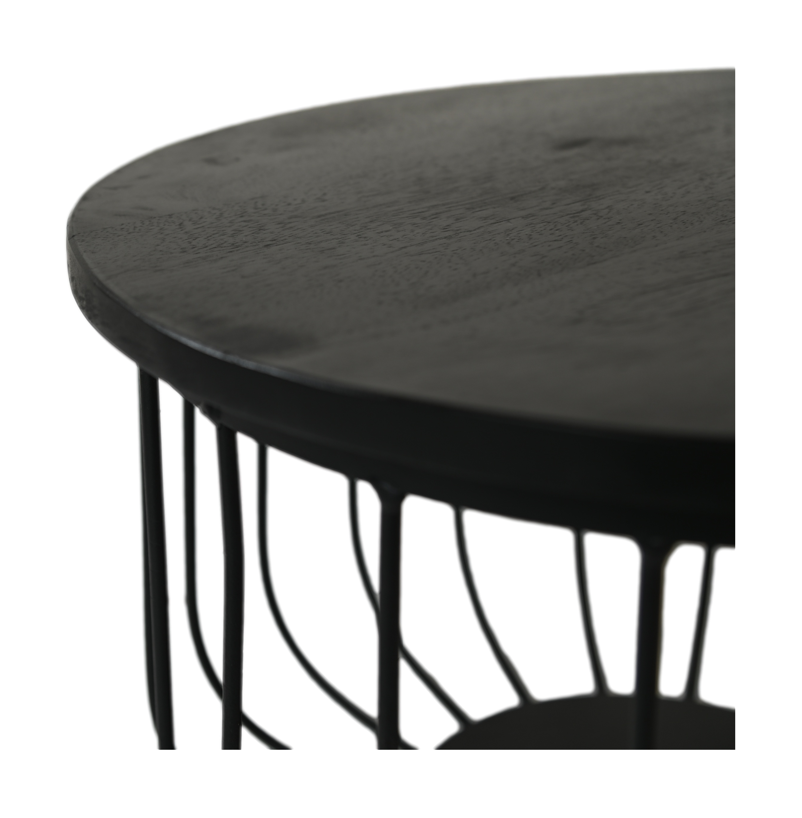 Maden - Set de 2 tables basses - Bois de manguier/fer - Noir - ø60x33/ø45x30cm