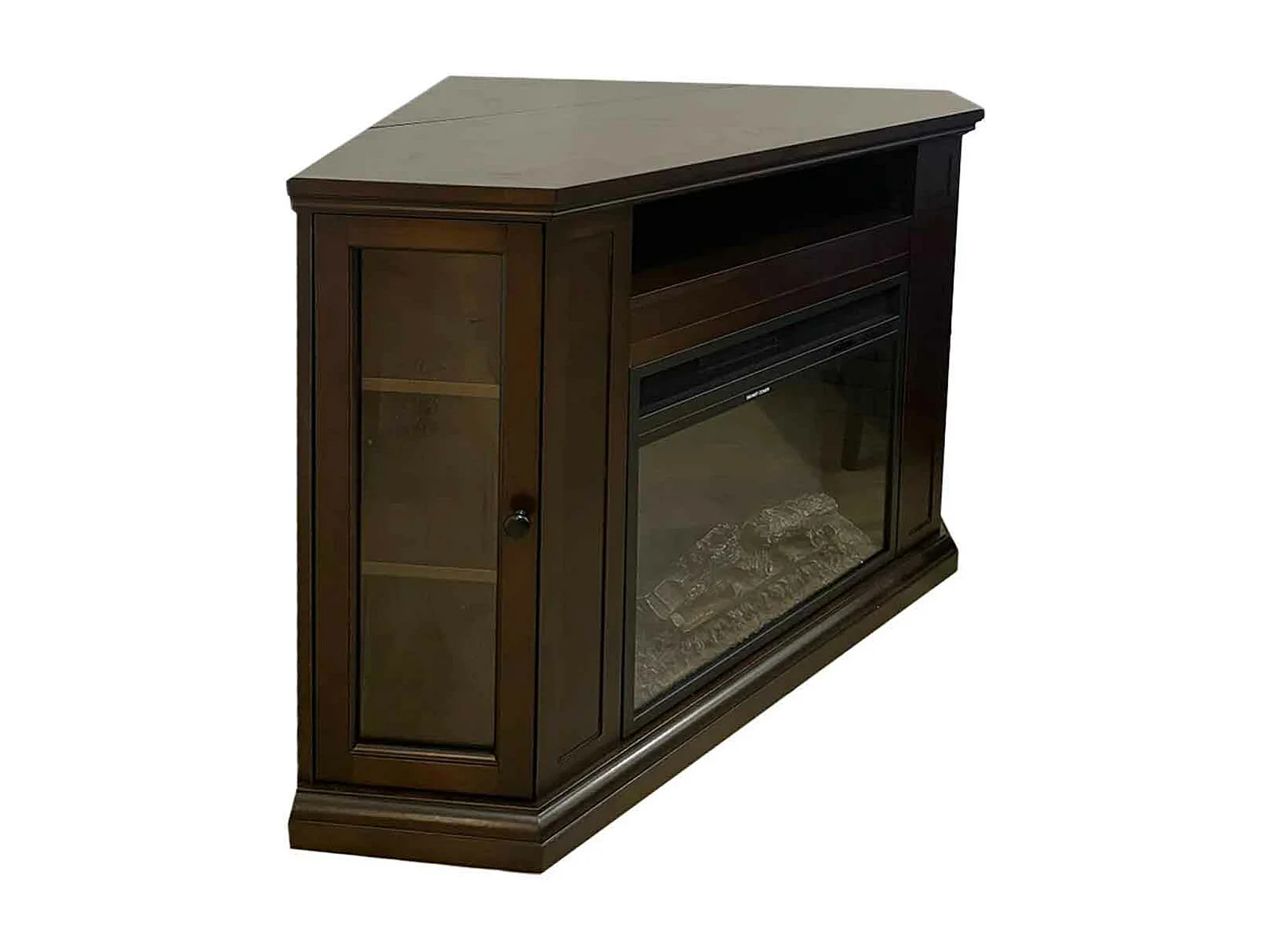 Madison - Cheminée électrique angulaire de sol en bois 126x78xH83 cm, effet flamme, couleur bois noyer