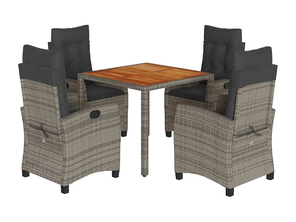 Magnir Ensemble à manger de jardin 5 pcs coussins gris résine tressée