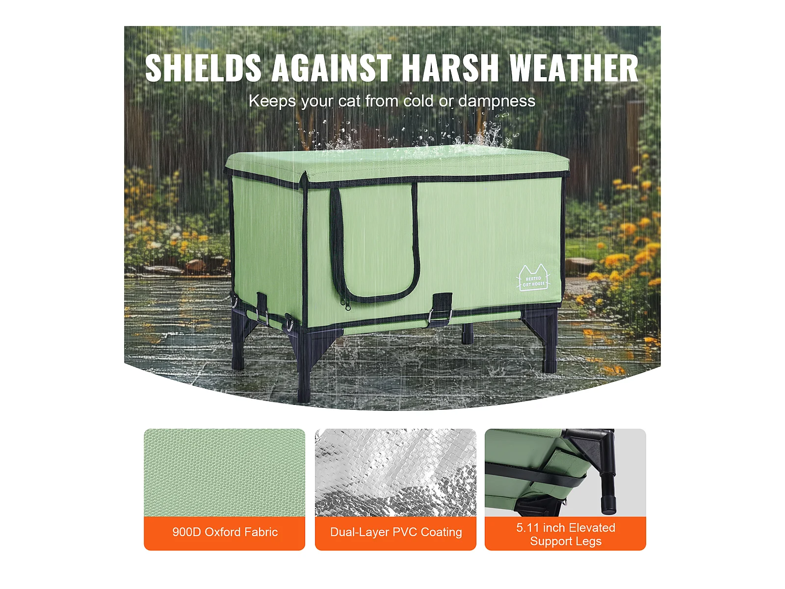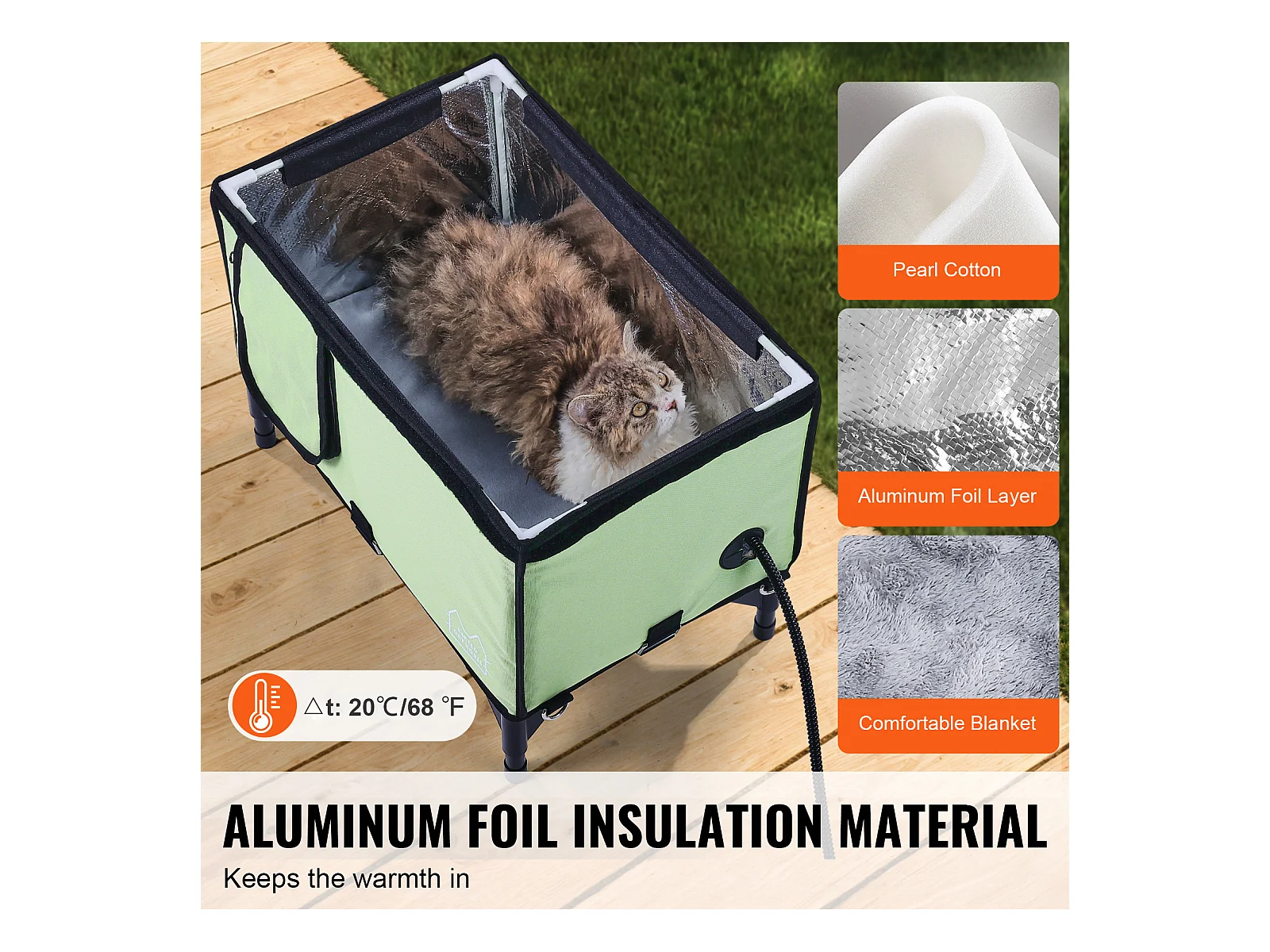 Maison de Chat, SucceBuy Niche surélevée et Chauffante pour Chat Cuboid Green (L) avec Coussin Chauffant