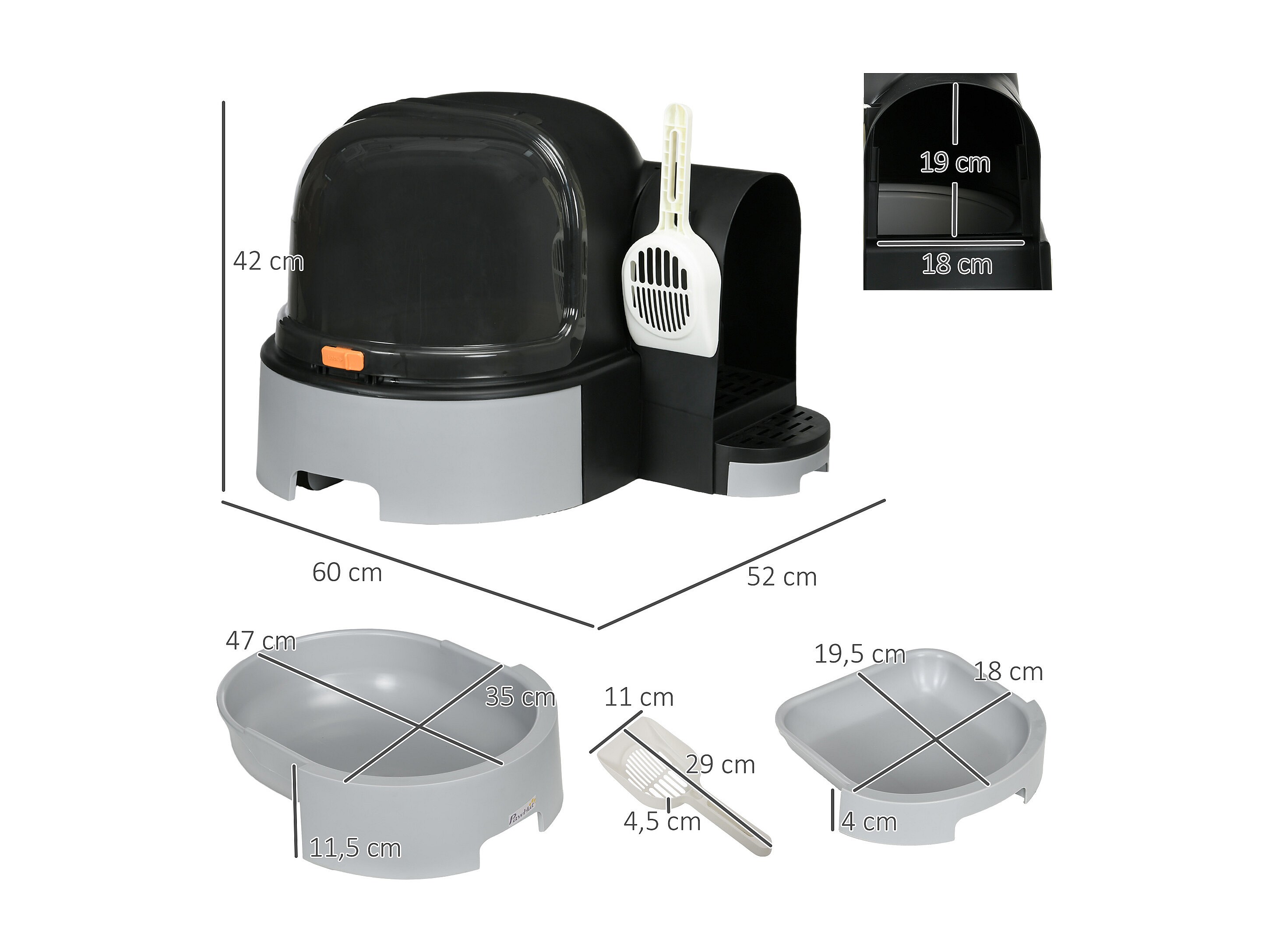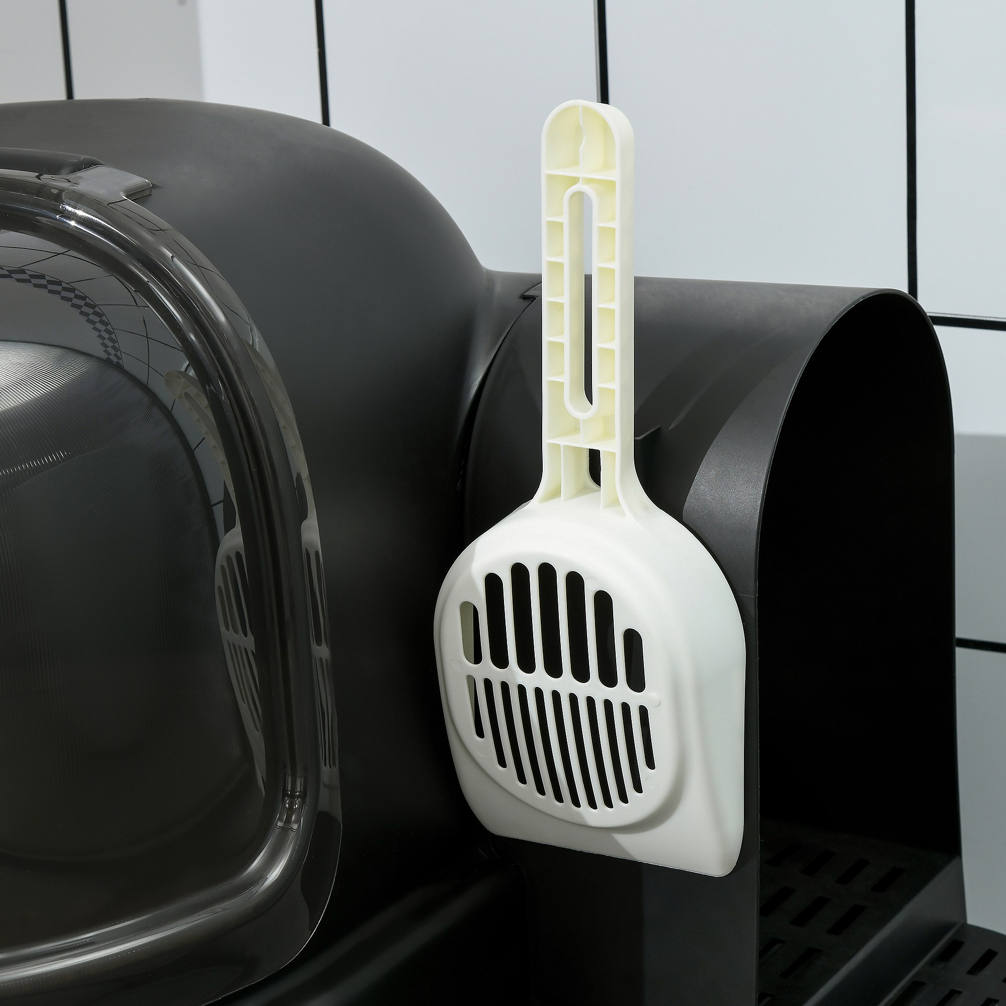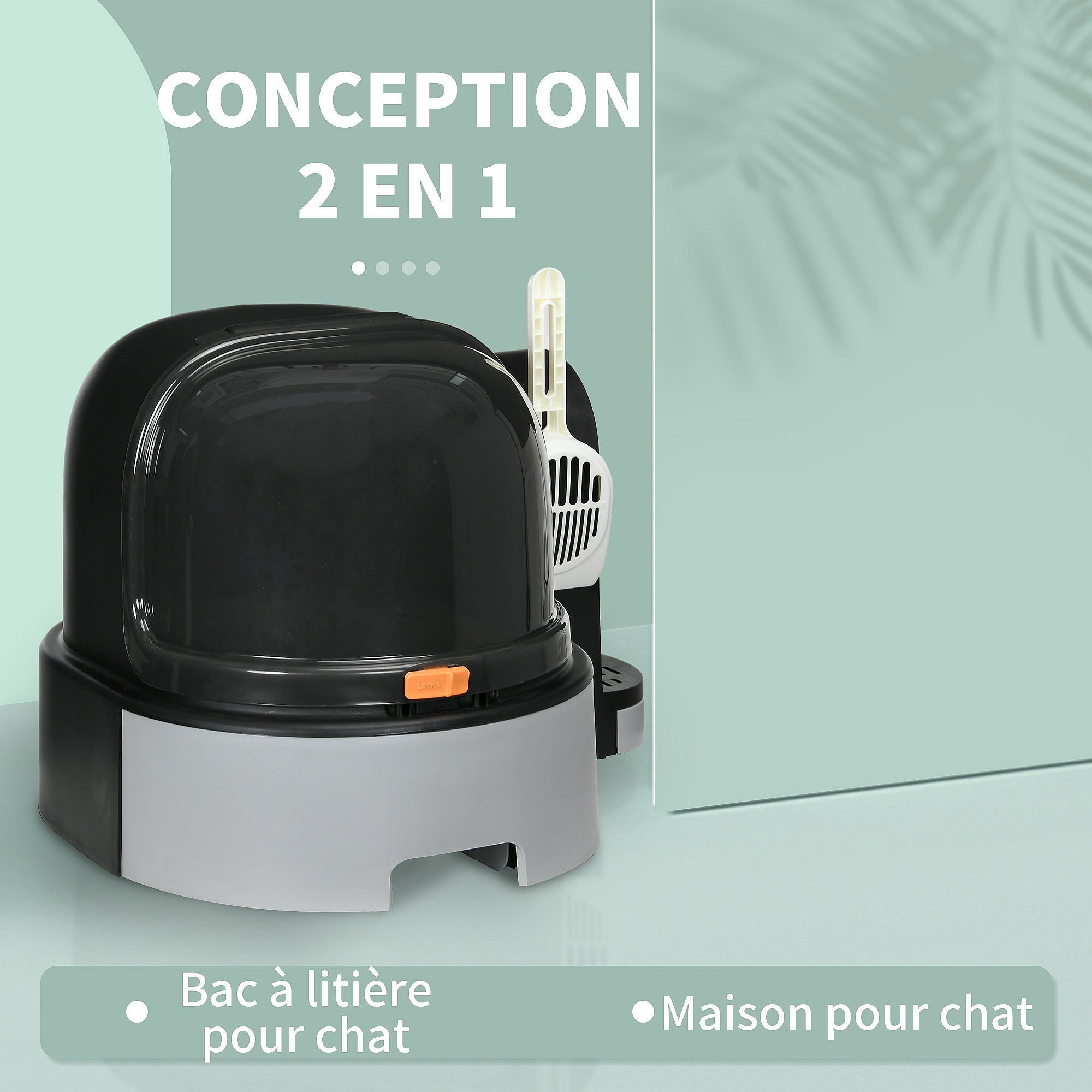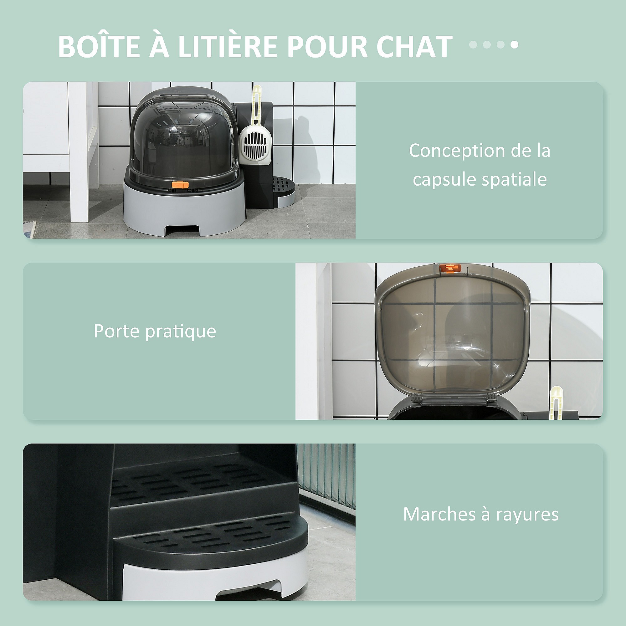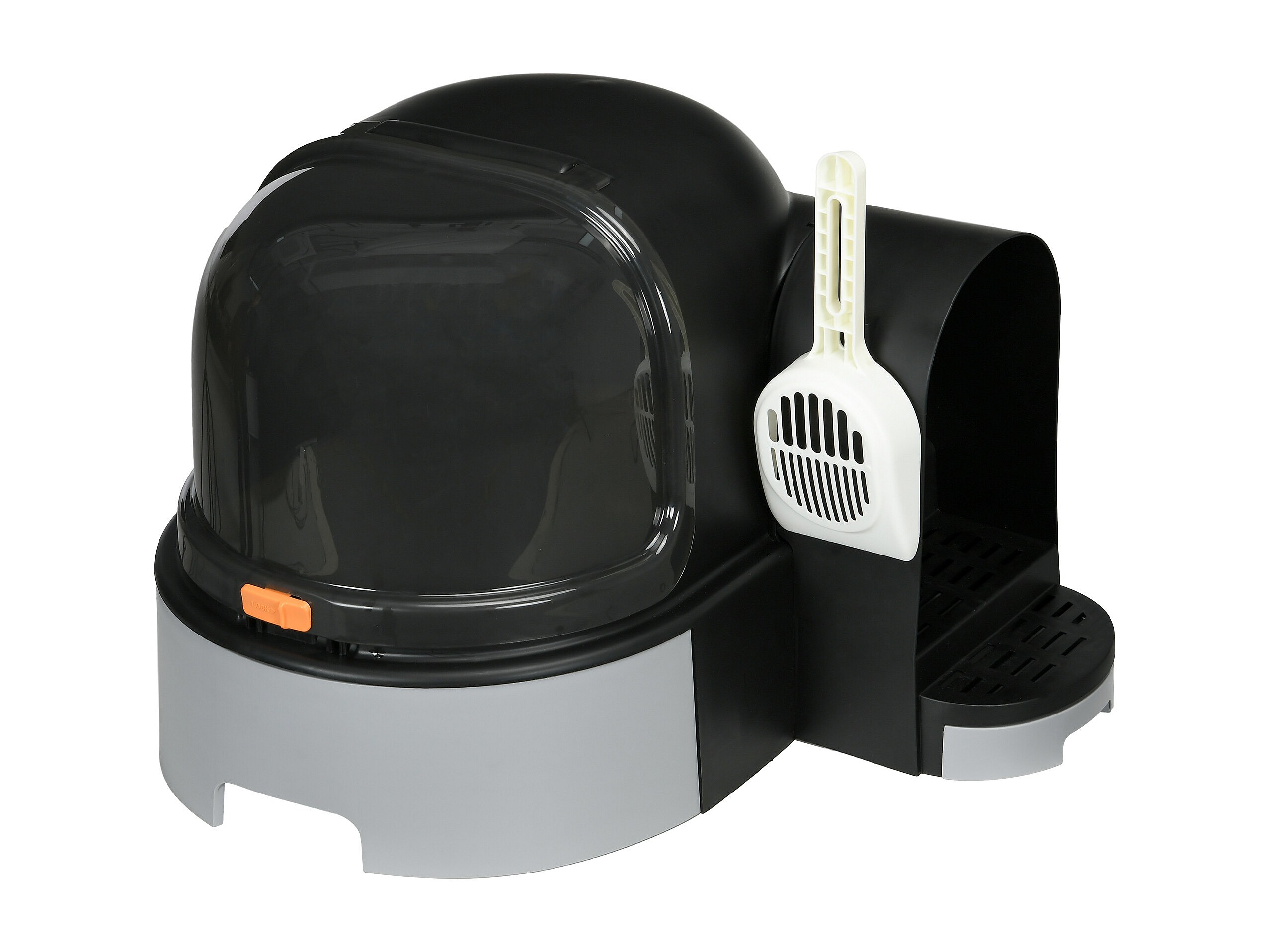 Maison de toilette litière pour chat design capsule spatiale - porte, capot ouvrant, pelle, 2 tiroirs amovibles - gris noir