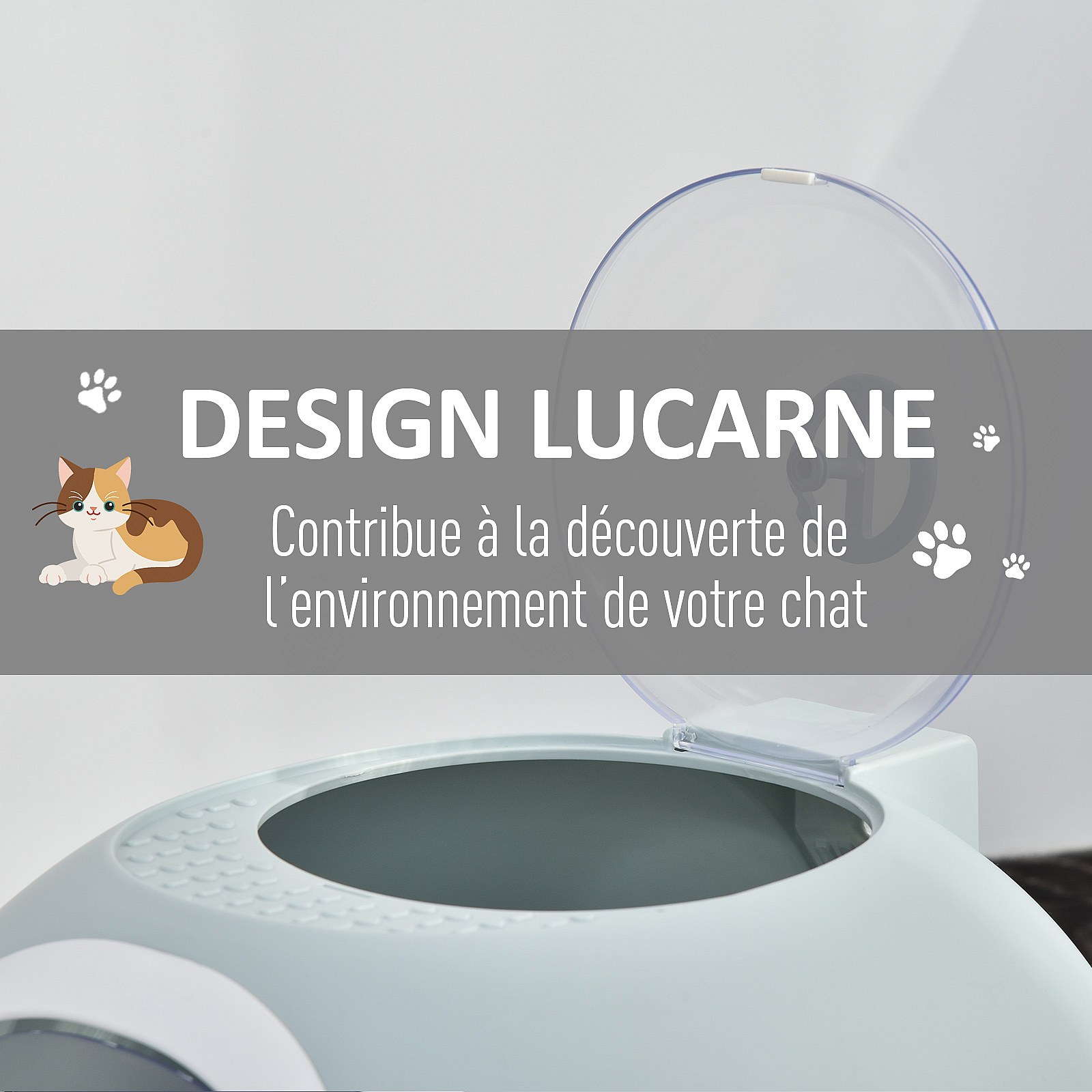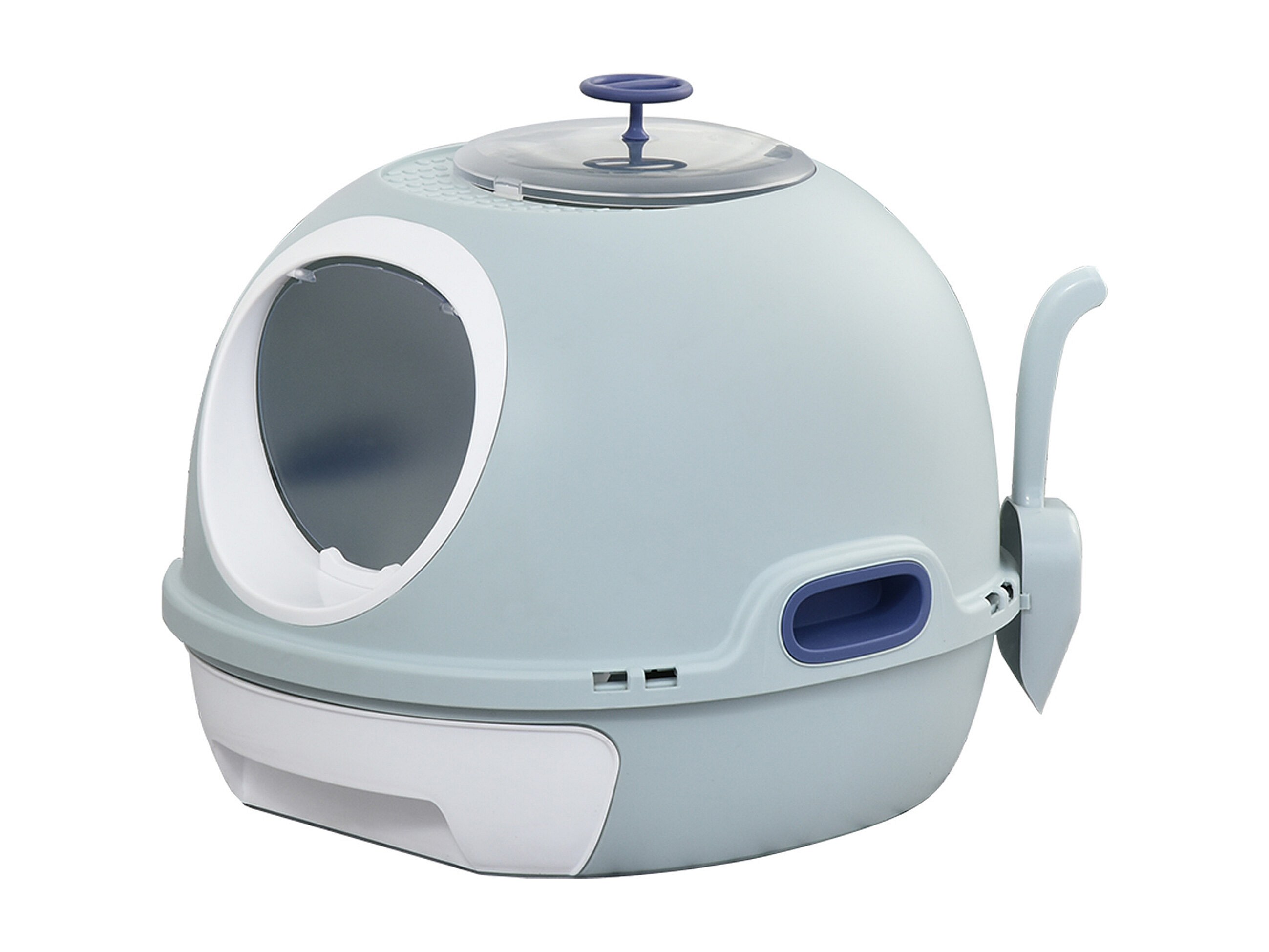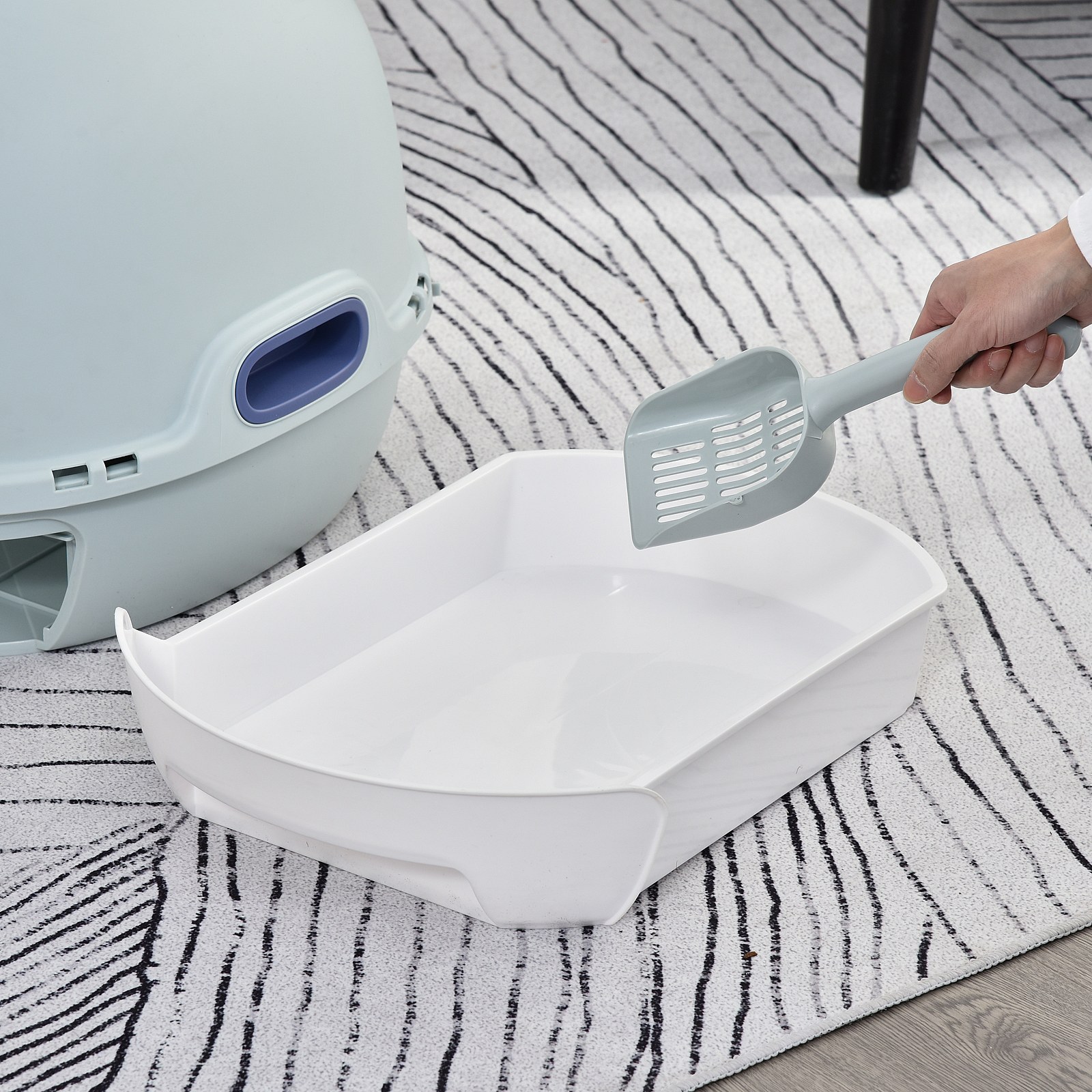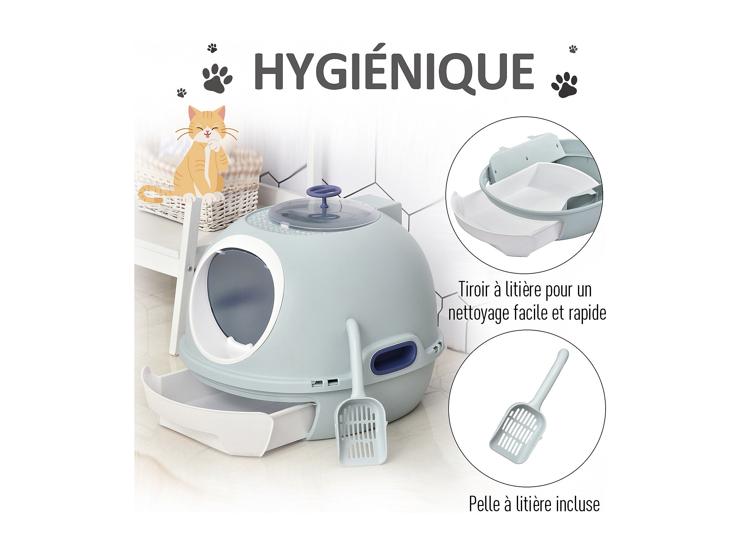 Maison de toilette portable pour chat tiroir à litière coulissant porte battante lucarne + pelle fournis dim. 47L x 55l x 44H cm bleu