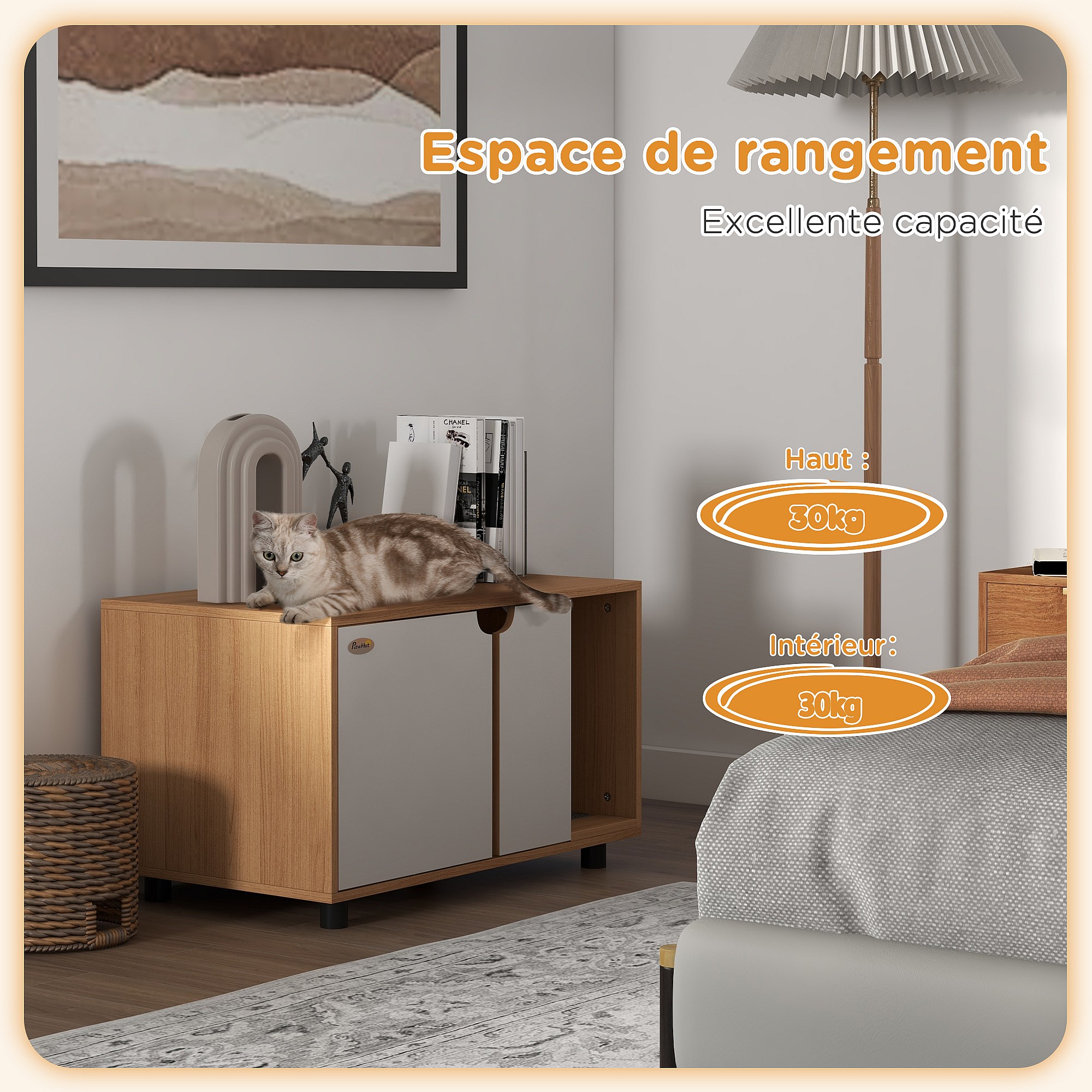 Maison de toilette pour chat style scandinave - meuble cache litière - portes, aérations, tapis de fuite - naturel blanc