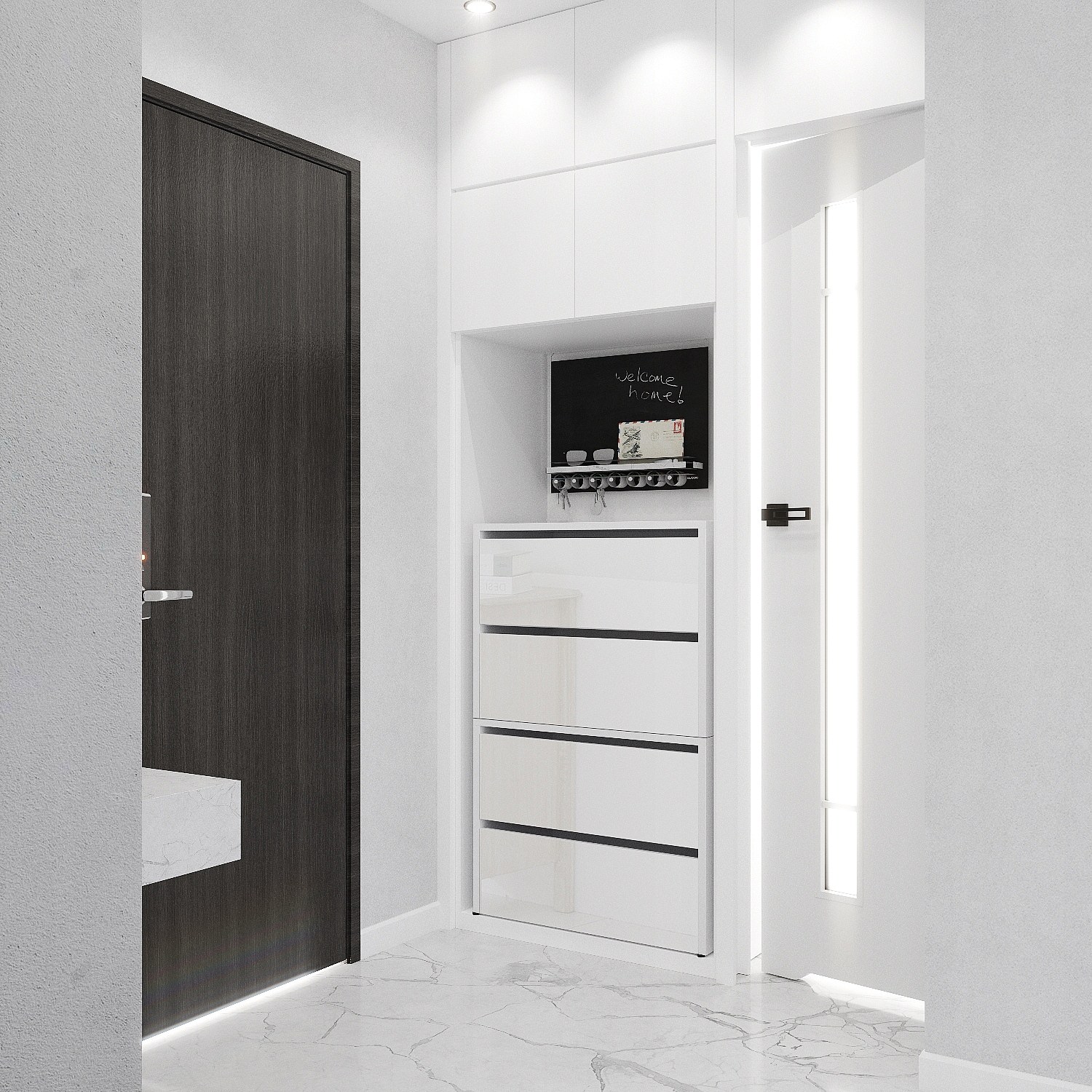Meuble à Chaussures Blanc Brillant 60x30x100cm – Étagère de Rangement Entrée Style Loft