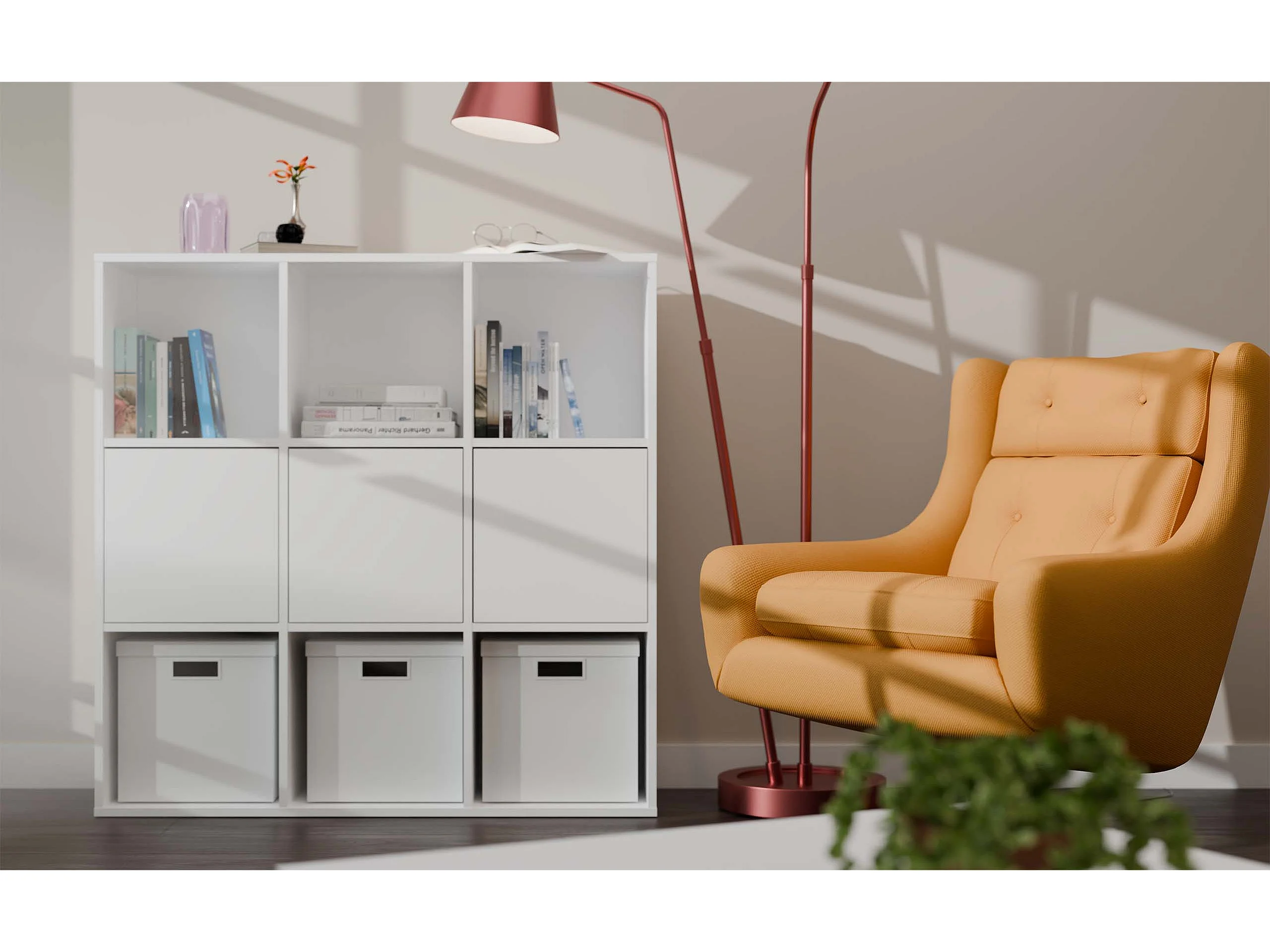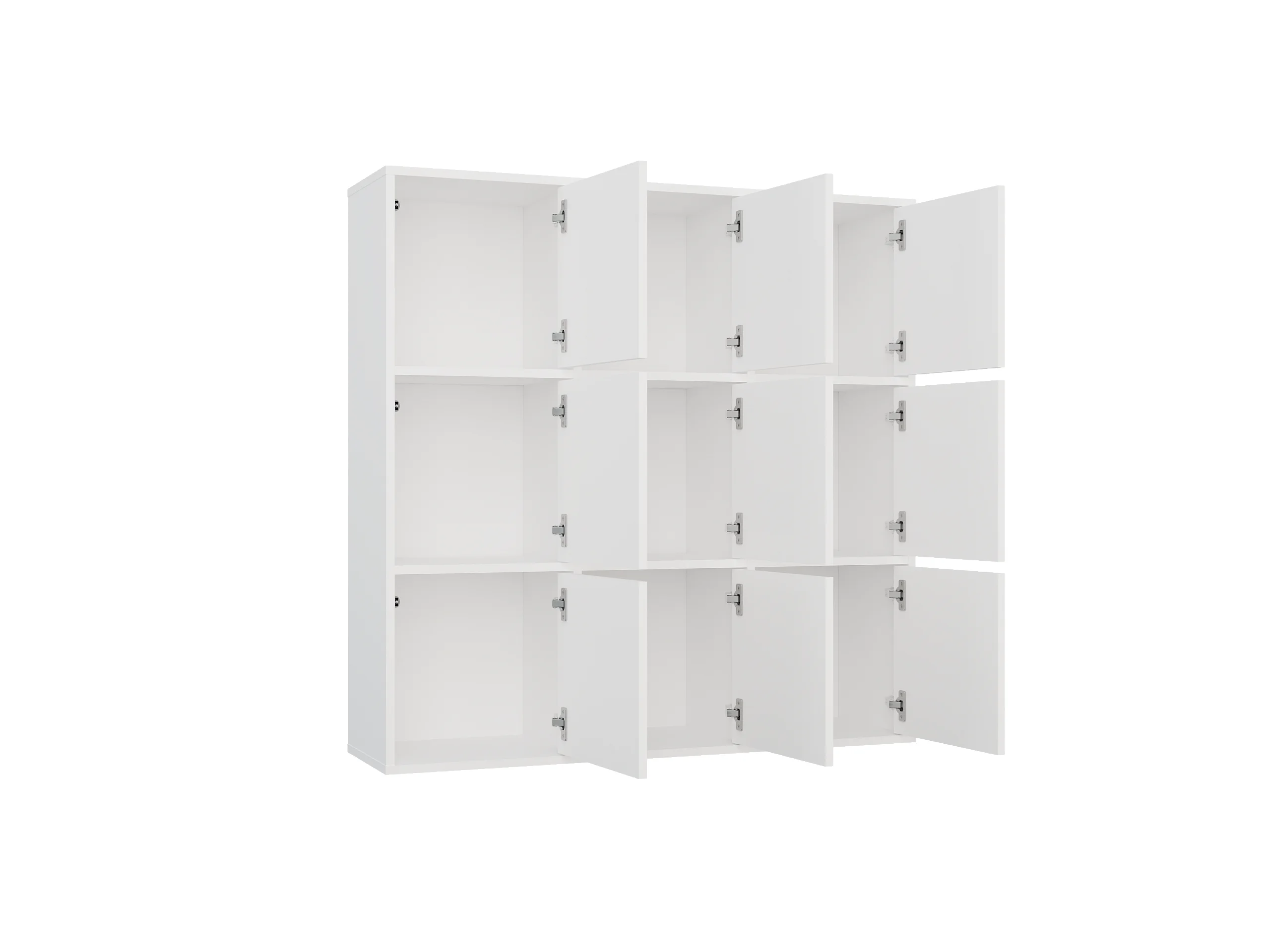 MALAX - Étagère blanche – 3 portes – Compartiments cubiques 110×110 cm – Système Tip-On