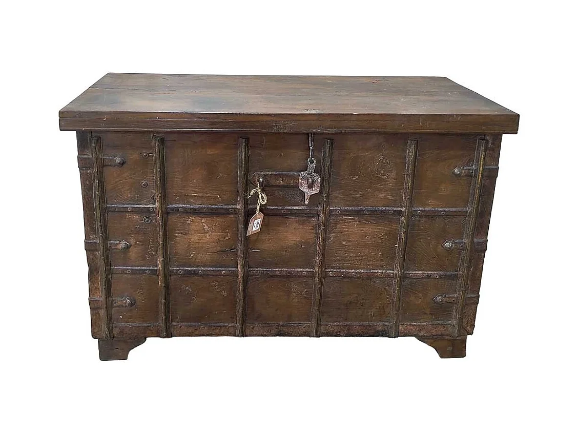 Malle en bois artisanale marron 130x47x85 (h)