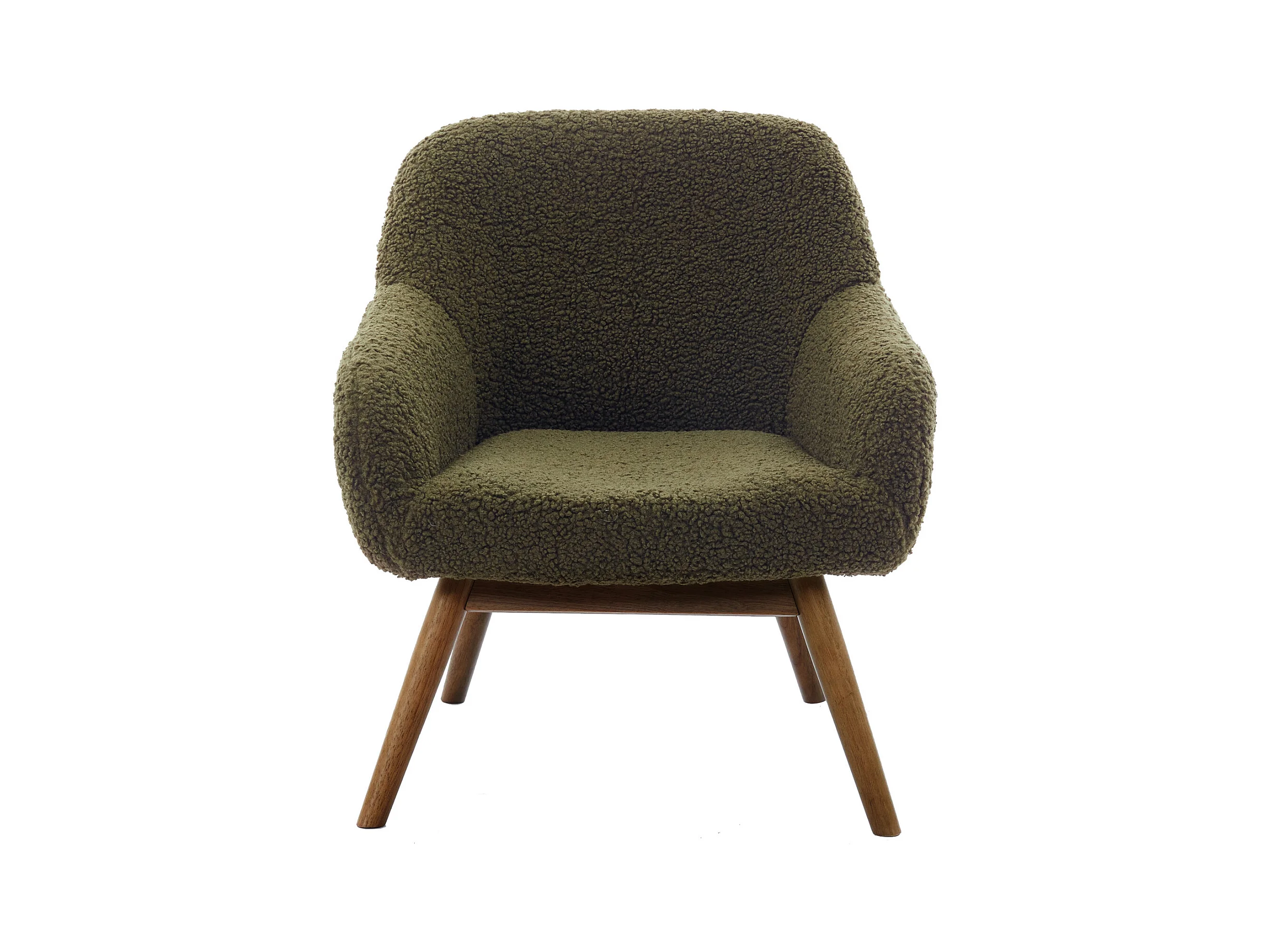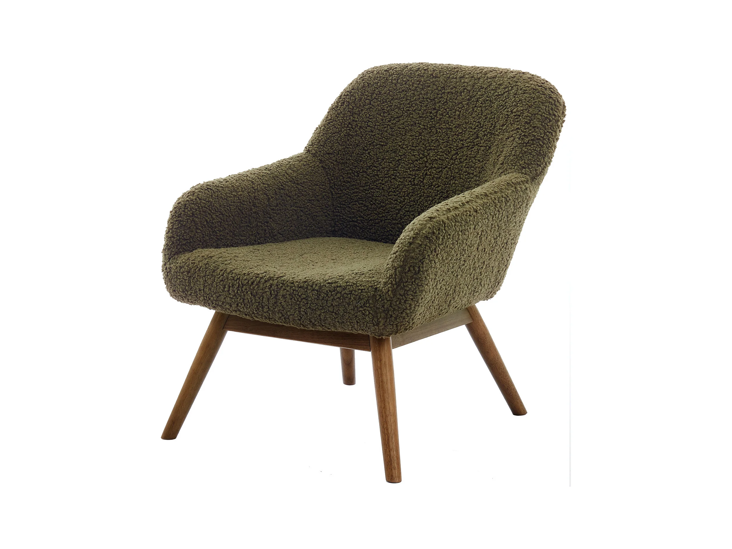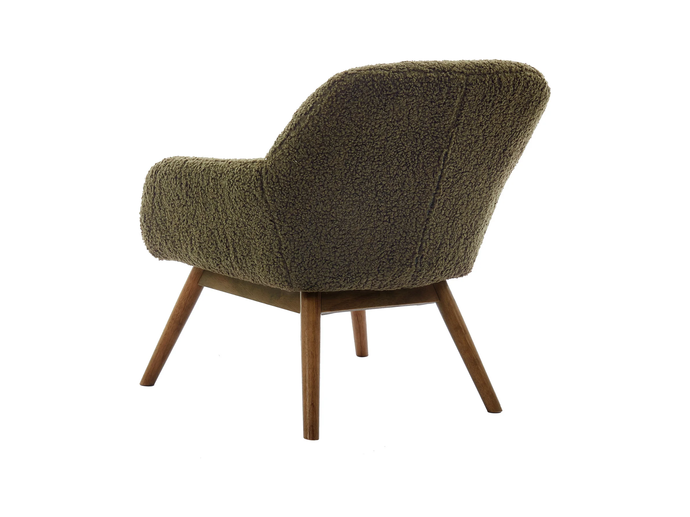 MALMO-Fauteuil en bois patiné noyer et tissu bouclé Army