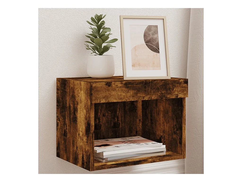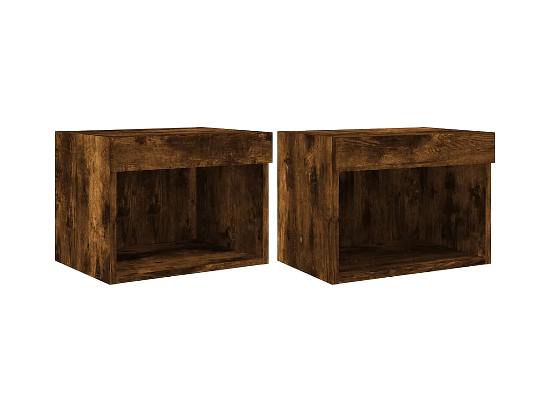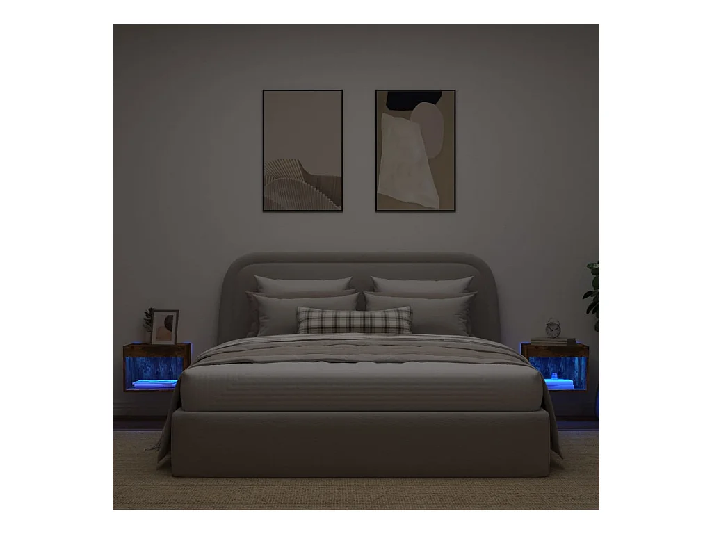 Mano Tables de chevet murales avec lumières LED 2 pcs chêne fumé