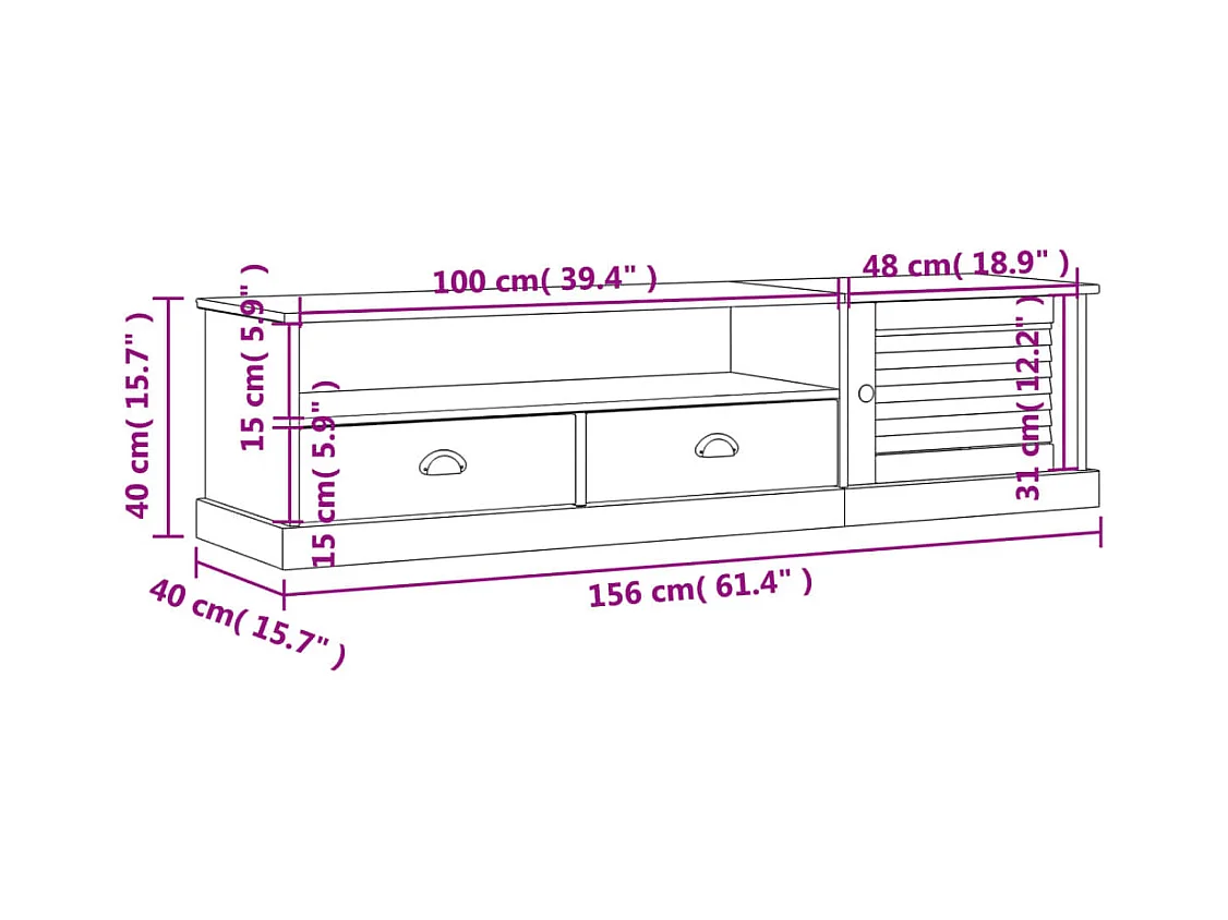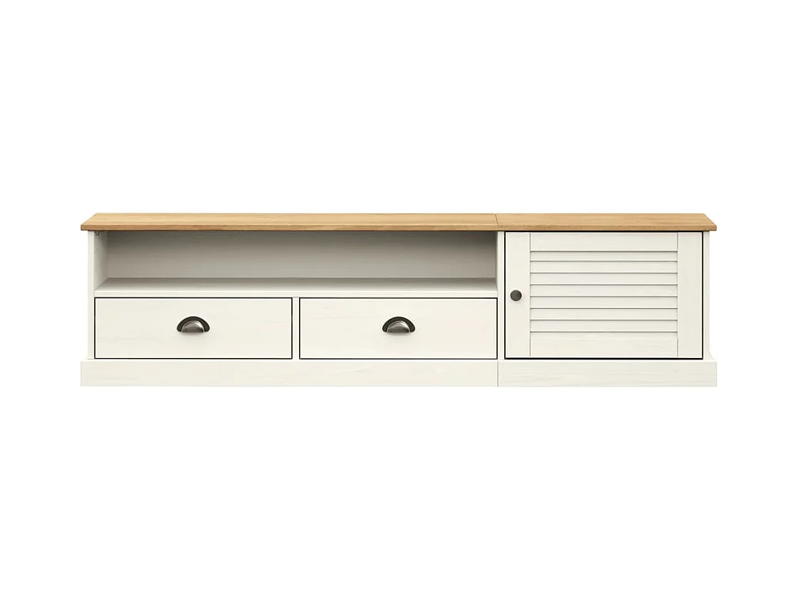 Marc-Frédéric Meuble TV VIGO blanc 156x40x40 cm bois massif de pin