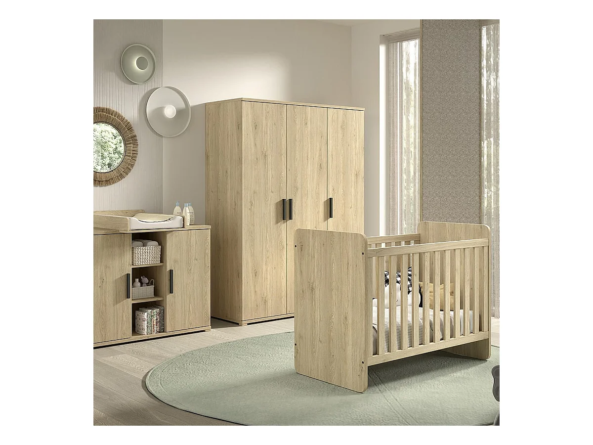 MARCO - Chambre Bébé Lit 60x120cm + Meuble à langer + Armoire 3P Aspect Chêne clair