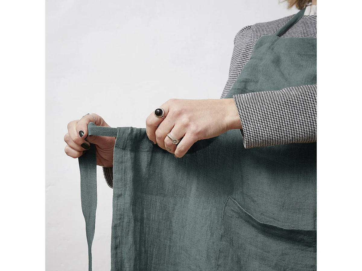 MARGAUX - Tablier Ajustable avec Poche 70x85cm Lin Lavé Coloris Ardoise