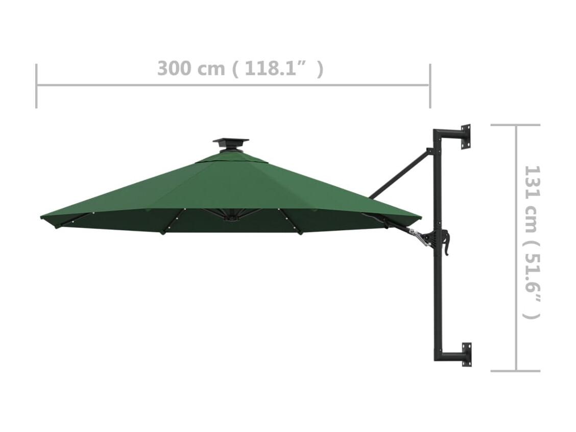 Marith Parasol mural de jardin avec LED 300 cm vert