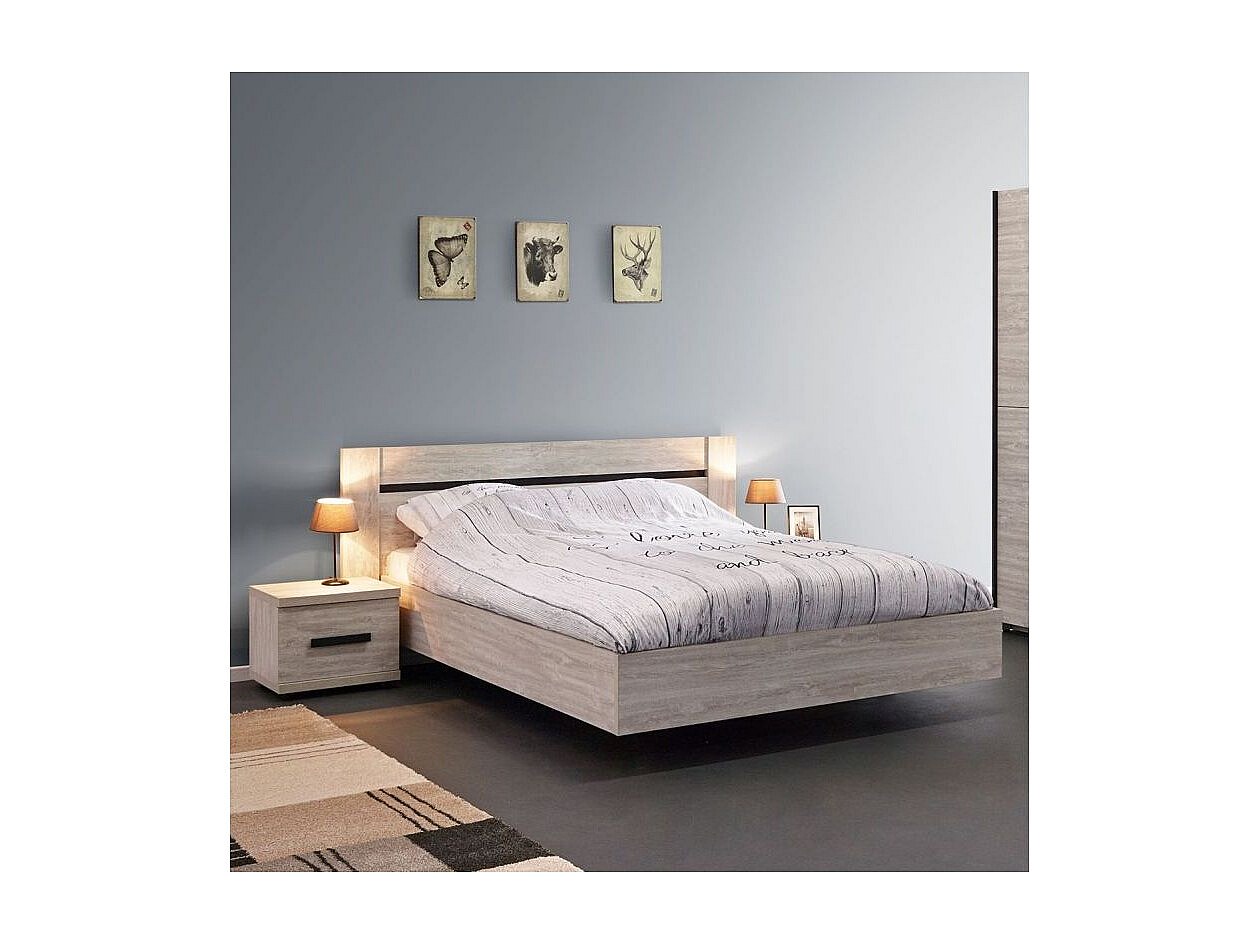 MARJORIE - Lit 180x200cm Structure Effet Bois Grisé Style Comtemporain