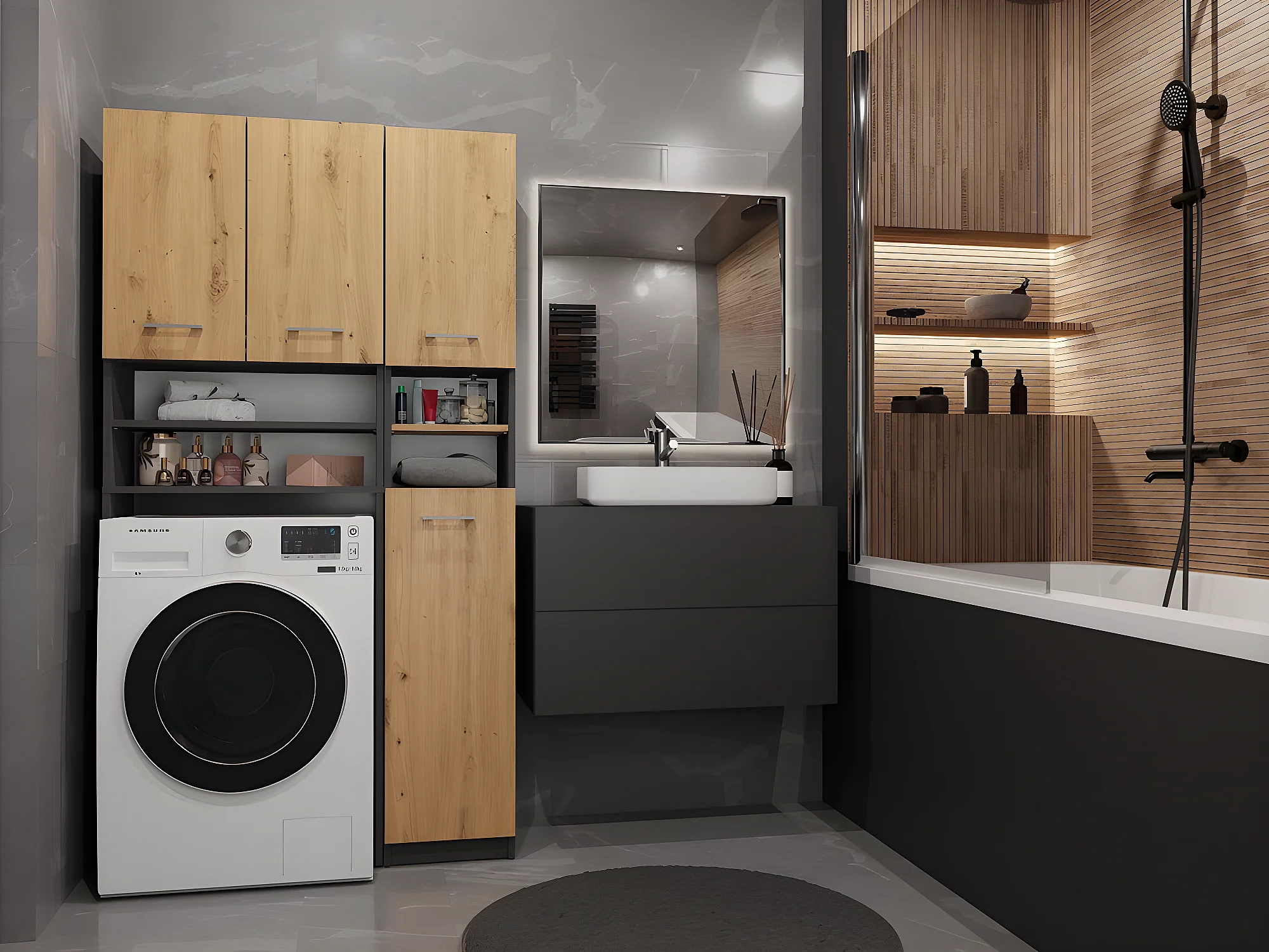 MAROL - Ensemble salle de bain style moderne - 96x30x183 - 4 portes+4 tablettes