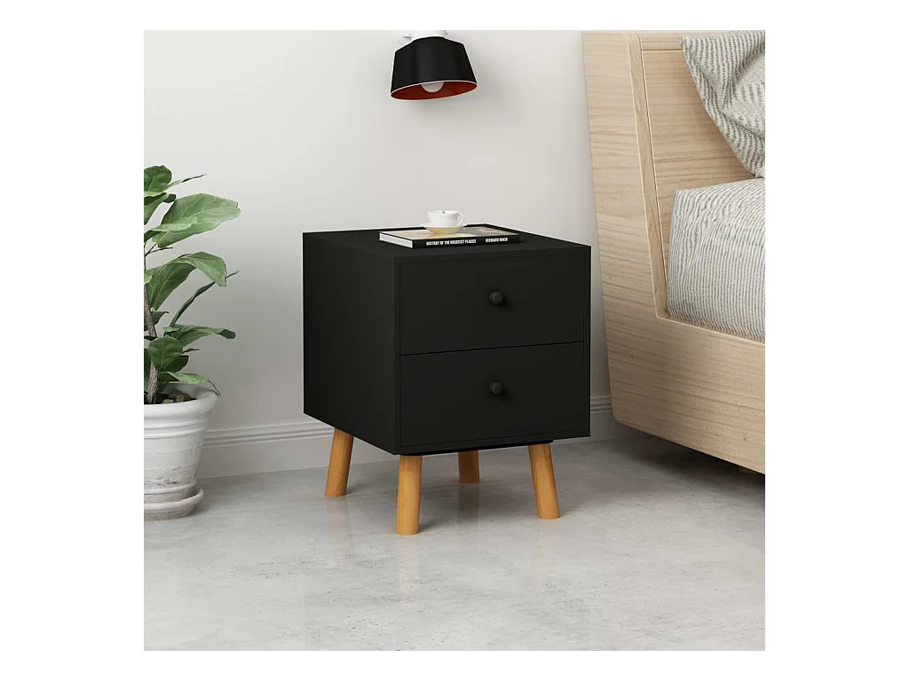 Kendallville Tables de chevet avec pieds en bois 2 pcs noir 40x35x69 cm