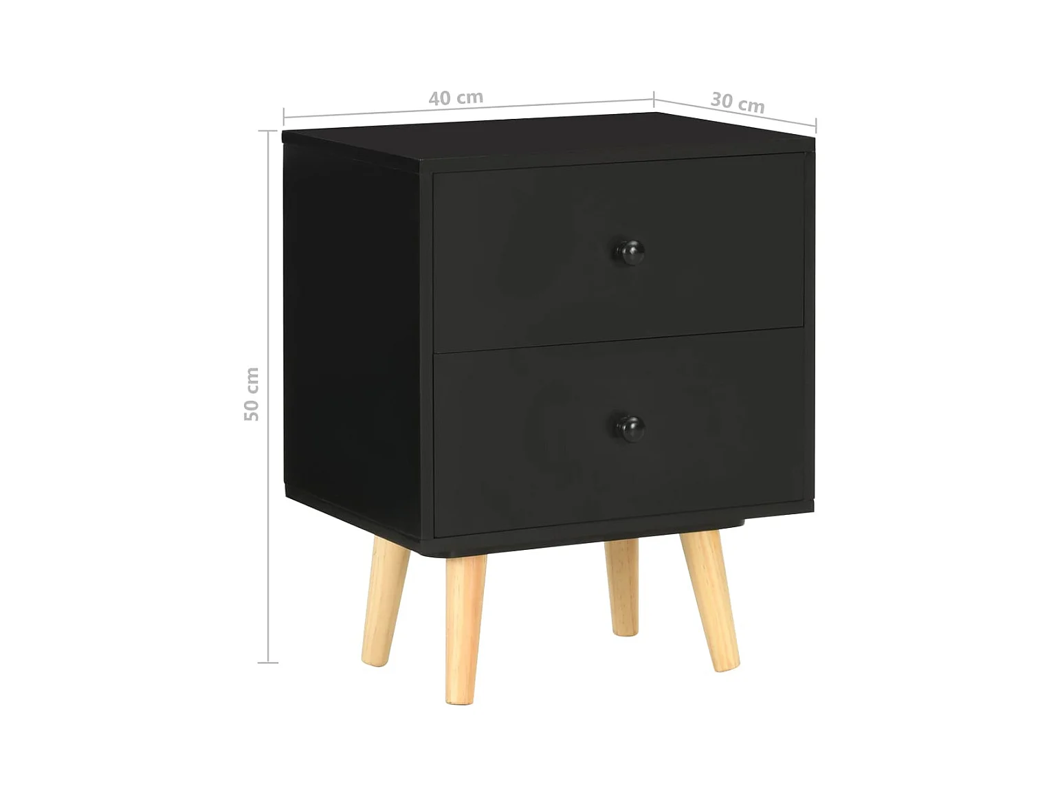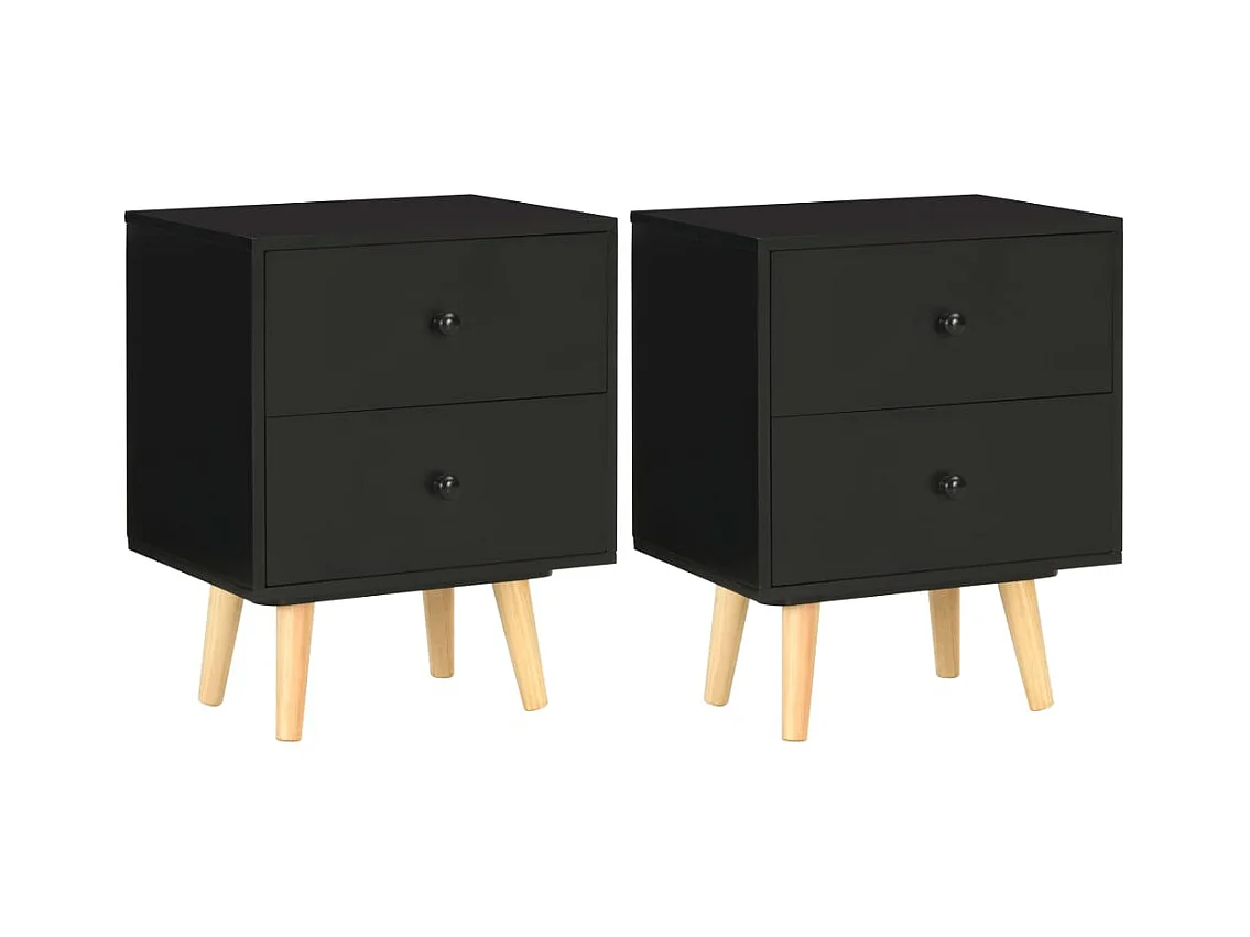 Kutztown Tables de chevet avec pieds en pin 2 pcs Noir 40x35x50 cm