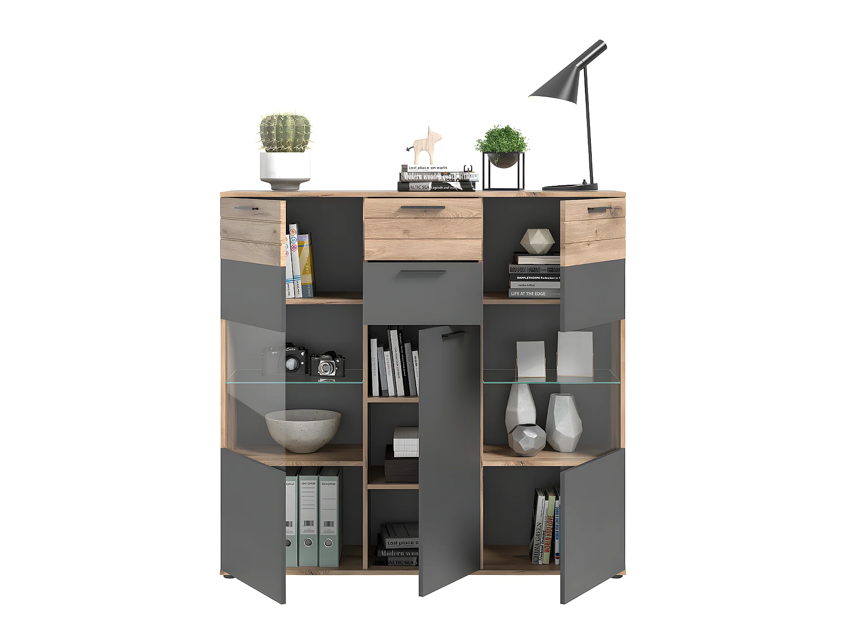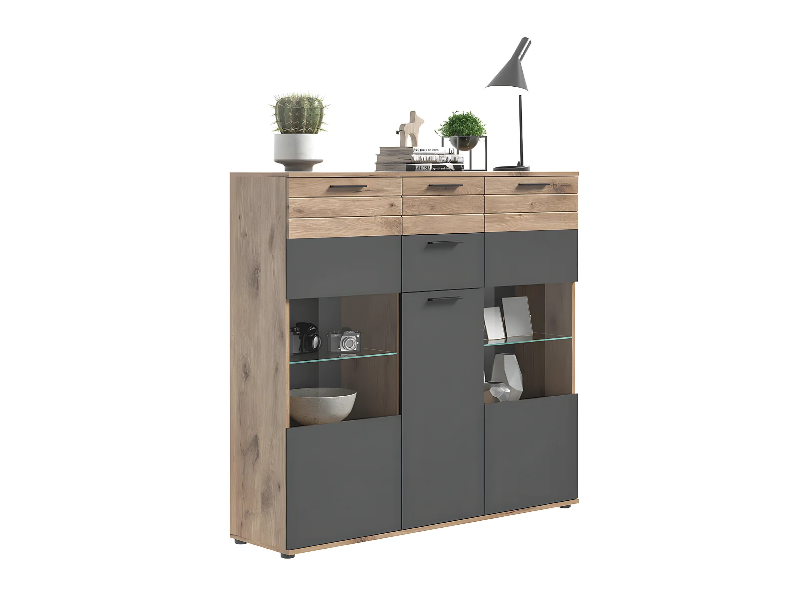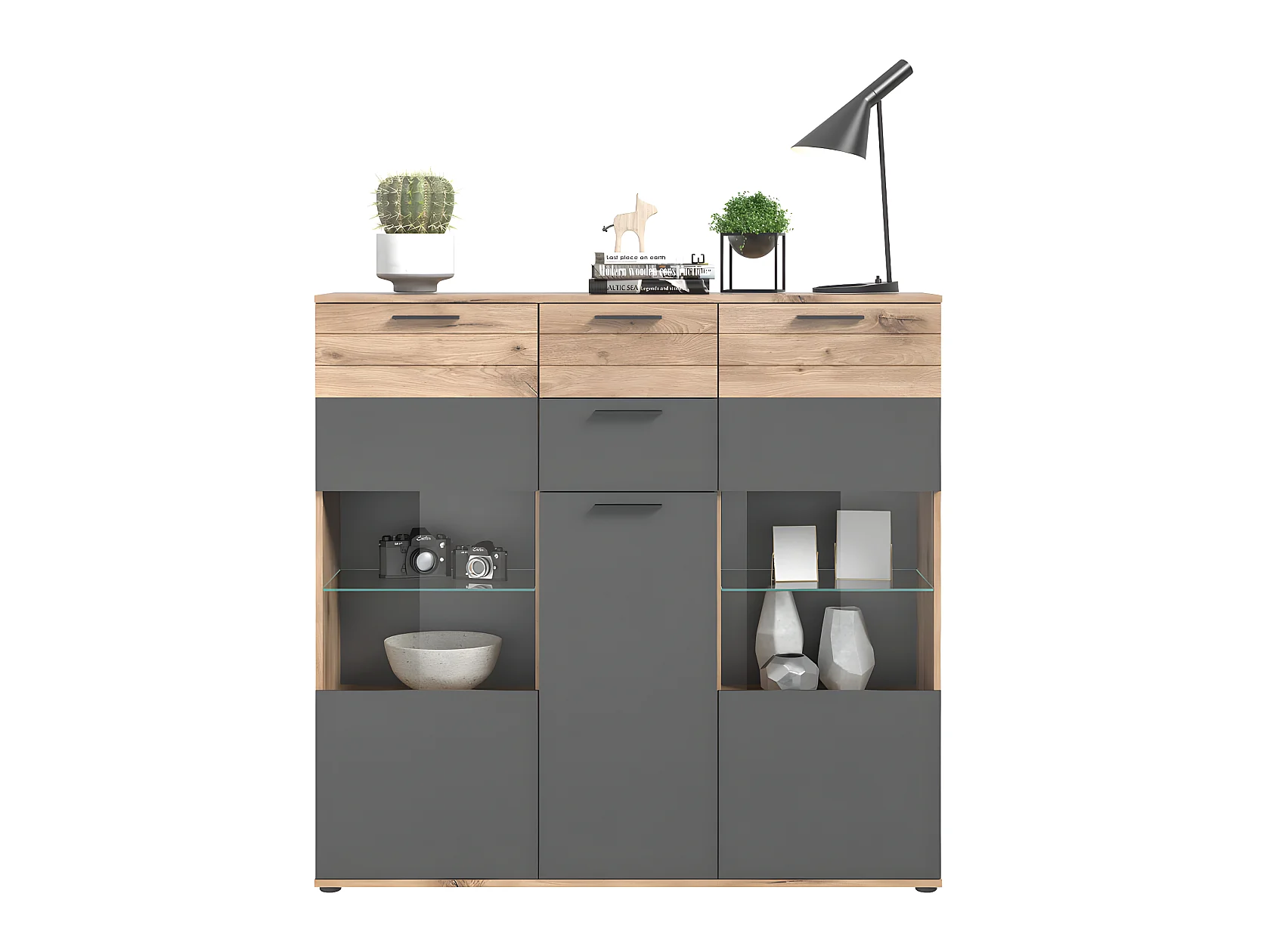 Mason buffet 3 portes, 2 tiroirs chêne décor.