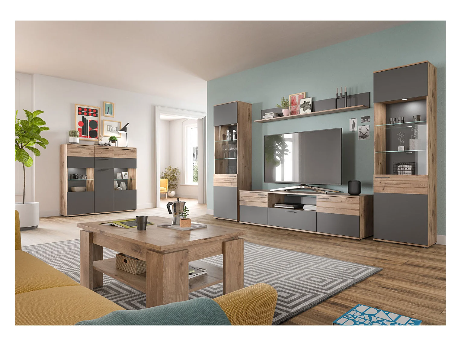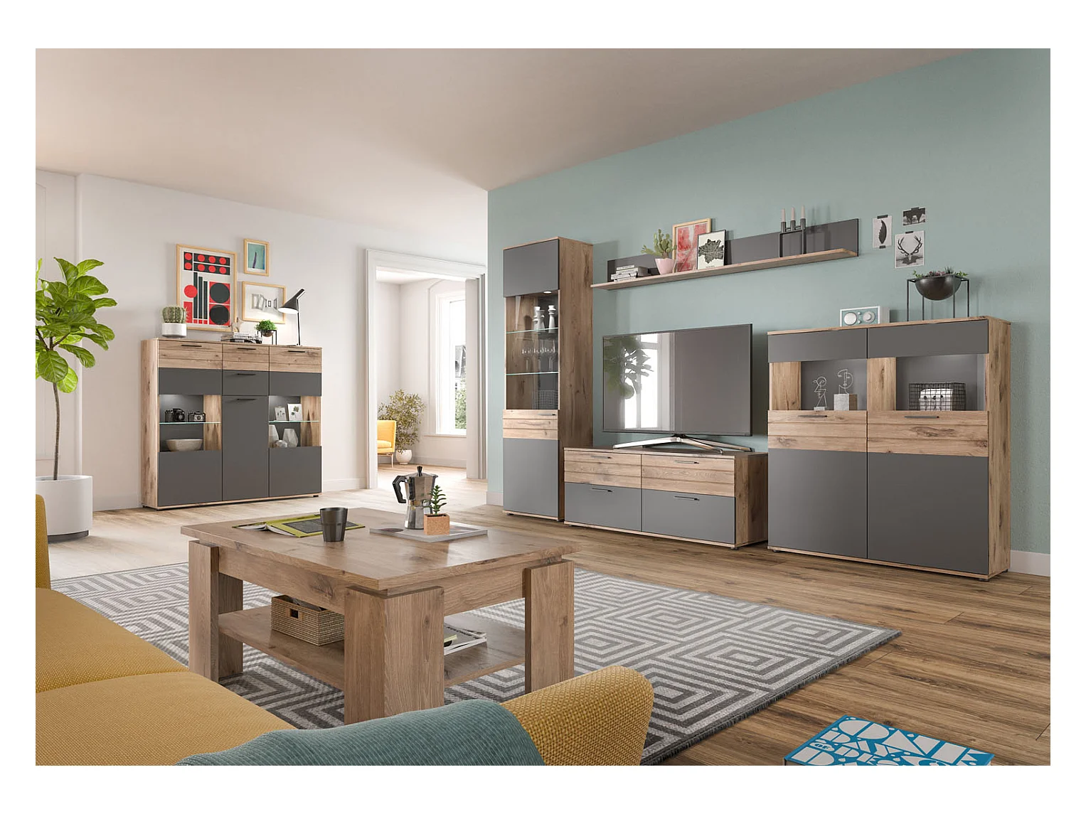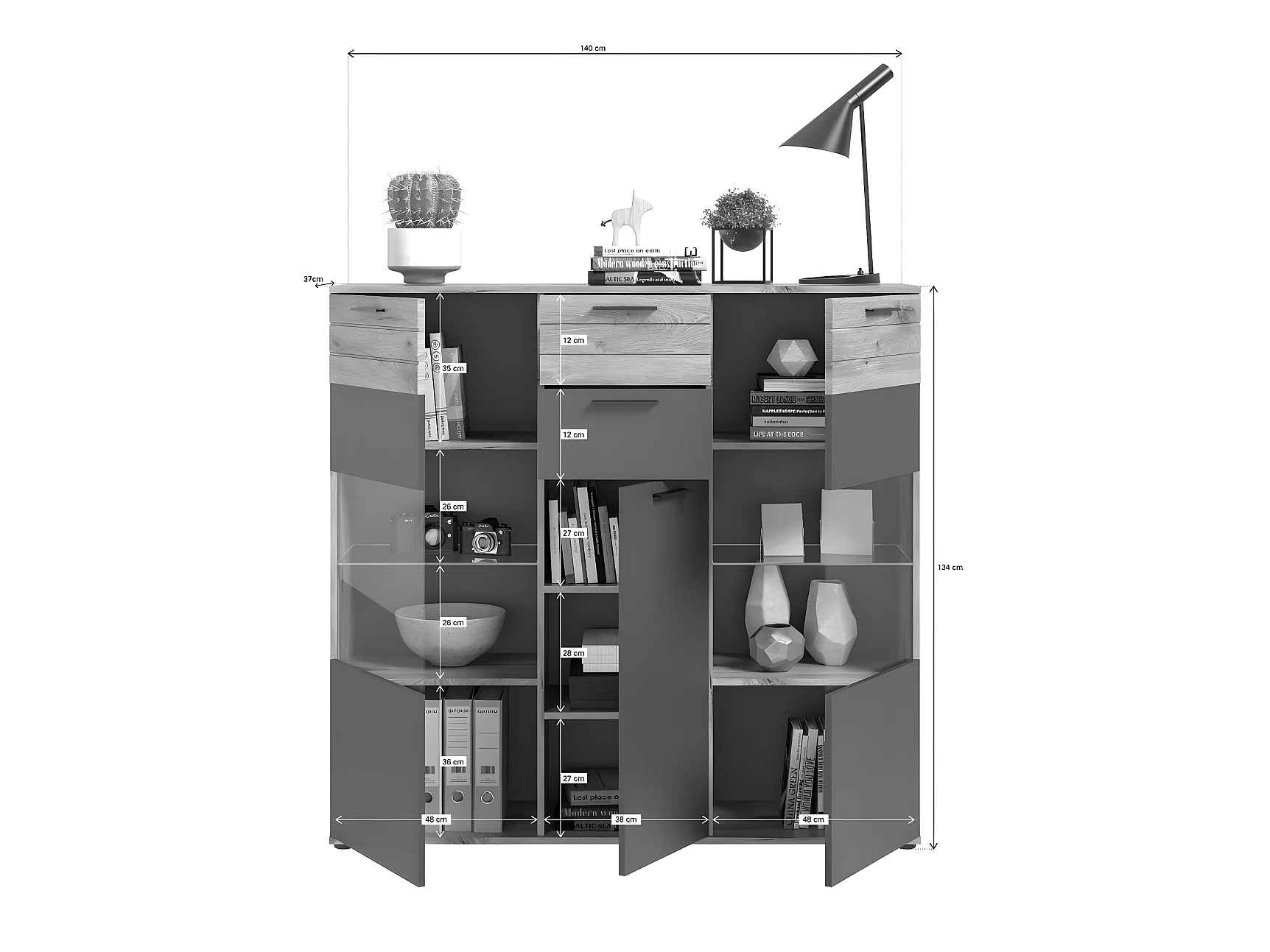 Mason buffet 3 portes, 2 tiroirs chêne décor.
