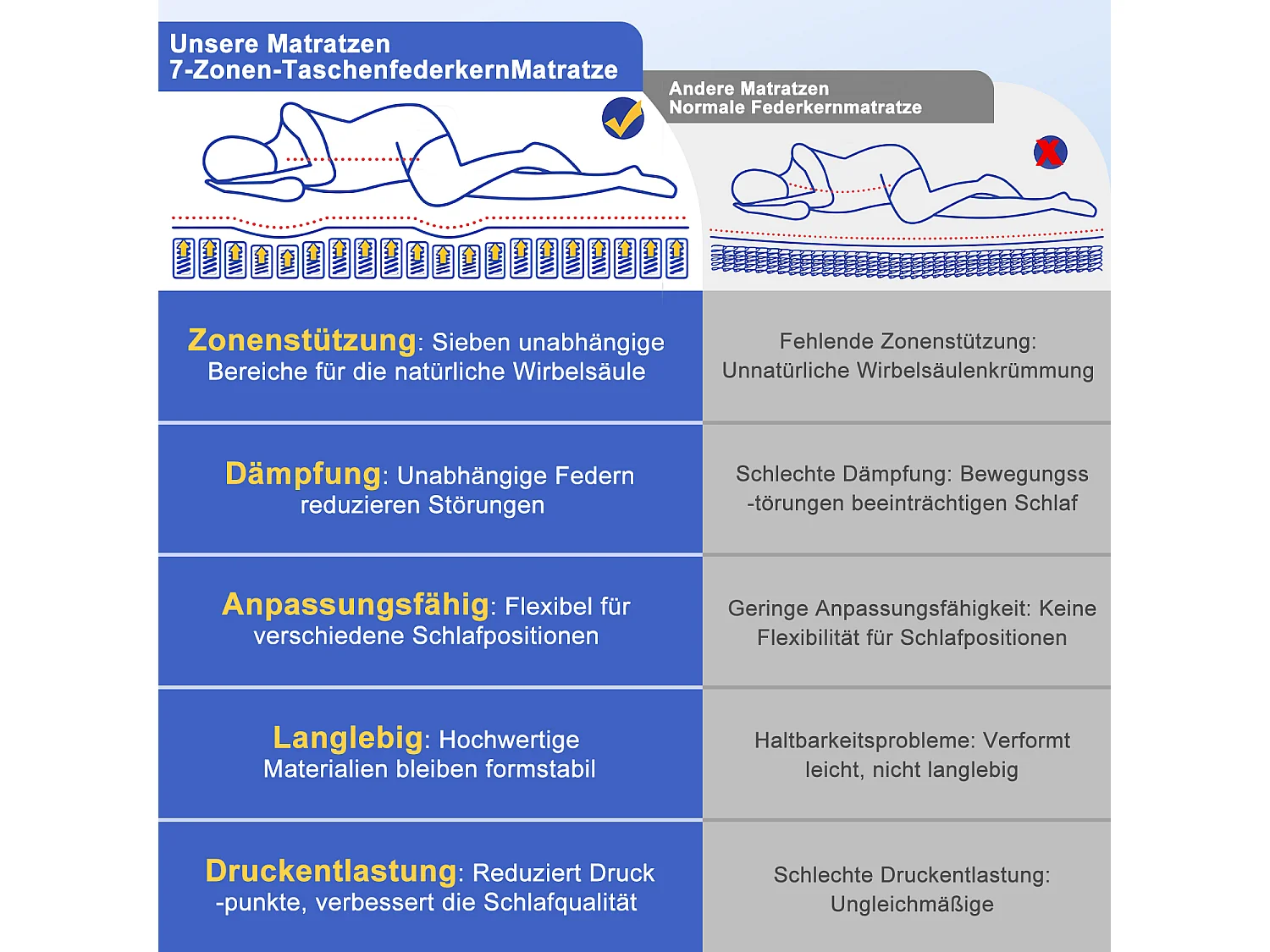 Hiazurm Matelas 140x 190 cm hauteur 22cm 10 couches de confort avec noyau à ressorts niveau de fermeté h3matelas 1 place à 7 zones matelas avec drap