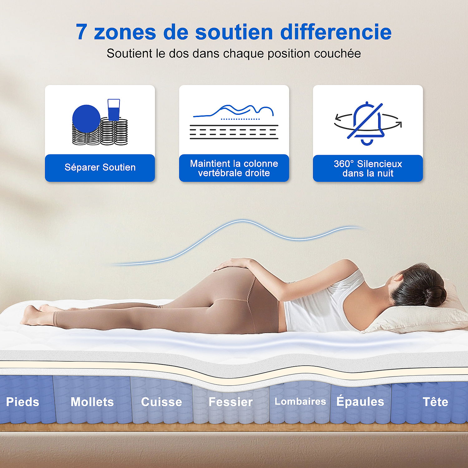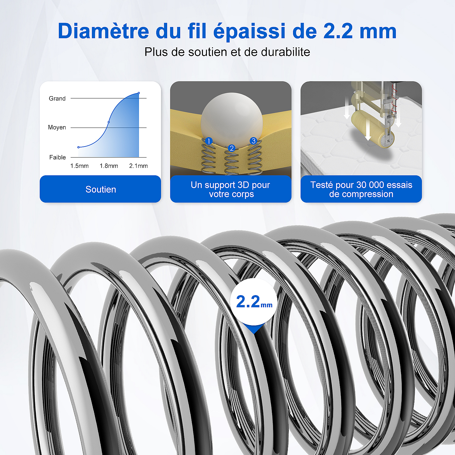 Matelas 80x200 cm à ressorts ensachés avec mémoire de forme,multiples tailles– Épaisseur 22 cm