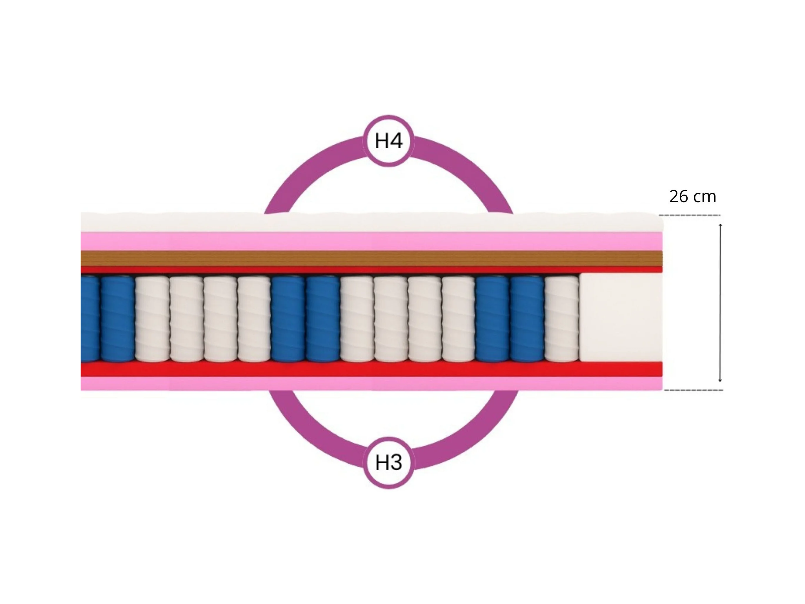 Matelas à ressorts ensachés Folyeso, 7 zones, coco, 200x200 cm, hauteur 26 cm, H3/H4, noir
